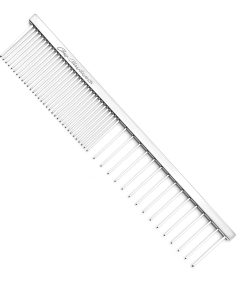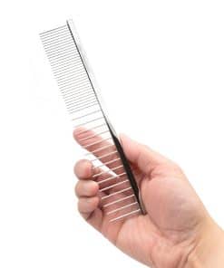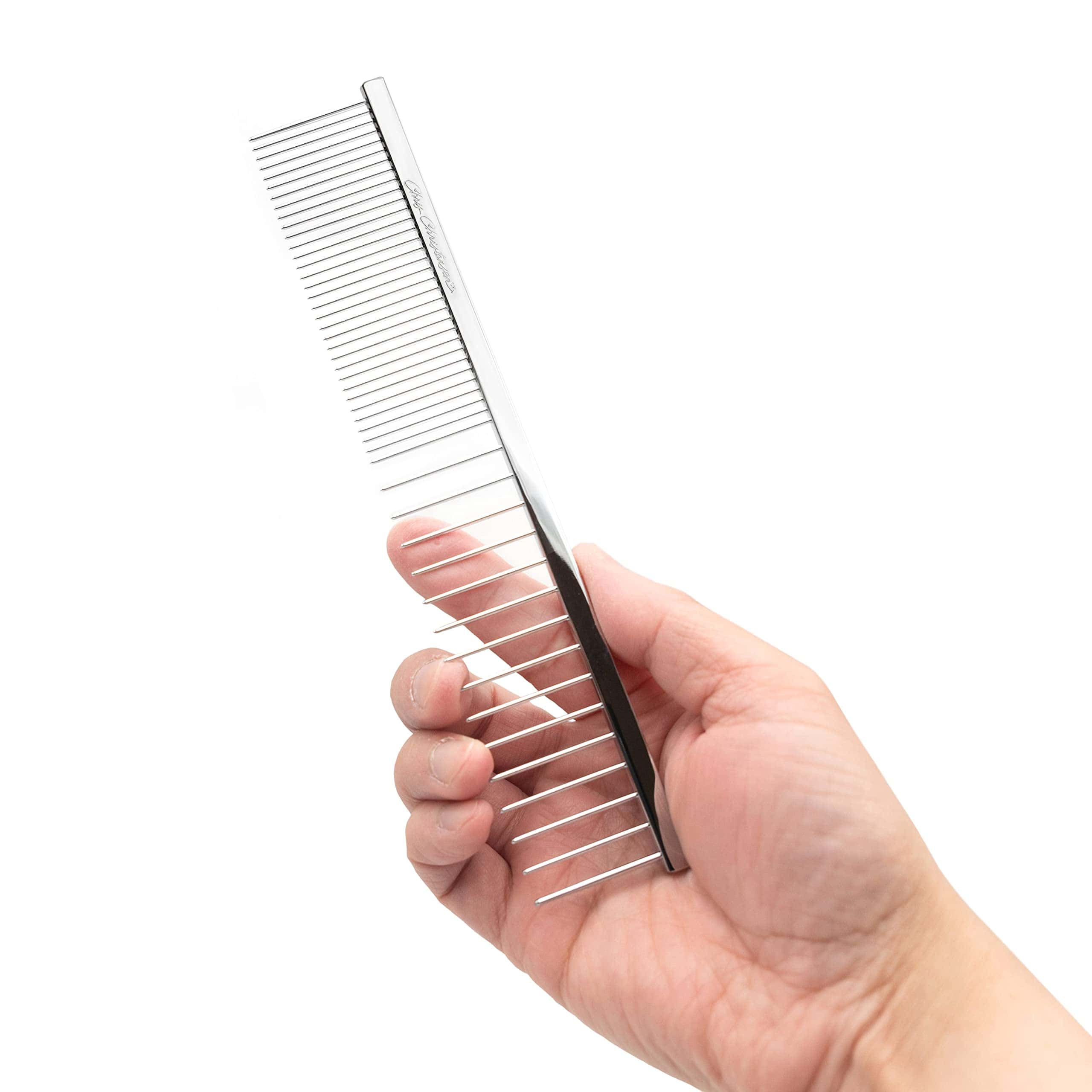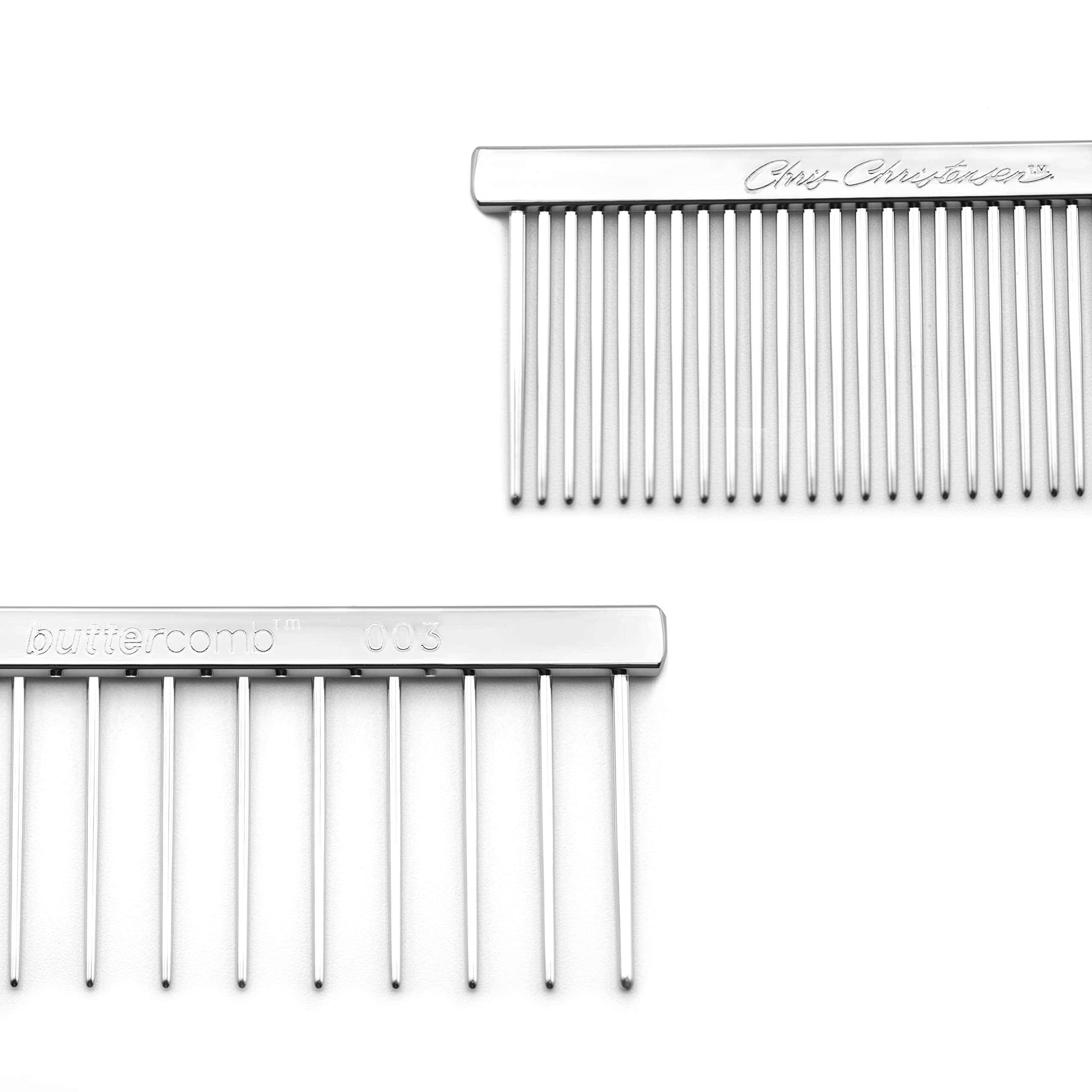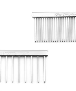 Para todas las razas excepto las de pelaje extremadamente corto. Los peines de mantequilla Chris Christensen Systems son «simplemente, la colección más asombrosa de peines en el mundo». Obtendrás más de ellos porque hemos puesto más en ellos. Hechos a mano hasta el más mínimo detalle, cada peine de mantequilla tiene una espina plana y una parte superior redondeada, lo que le permite deslizarse sin problemas a través del pelaje. Los dientes de acero inoxidable están sólidamente incrustados en un núcleo de latón sólido creando una herramienta ultra resistente y duradera que es más cómoda de usar. El diseño único de los peines de mantequilla es sin costuras y suave para que no se enrede el cabello y sea cómodo de usar. Prueba un peine de mantequilla. No usarás otro peine nuevamente.