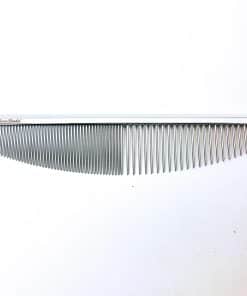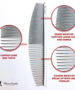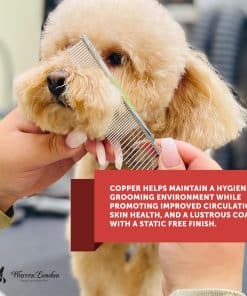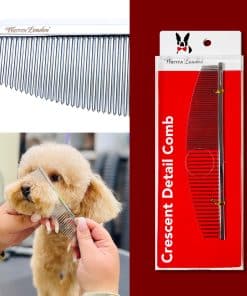 Nuestro elegante peine con forma de media luna está especialmente diseñado para proporcionar un aseo preciso y detallado a perros de todos los tamaños. La forma única del peine sigue los contornos naturales del cuerpo de su mascota, lo que facilita el trabajo en áreas delicadas como la cara, las orejas y la cola. Fabricado con cobre de alta calidad, este peine es resistente a la corrosión y está diseñado para durar. Las propiedades higiénicas del cobre ayudan a mantener un entorno de aseo limpio y saludable. Además, el cobre se ha relacionado con una piel y un pelaje más saludables, lo que resulta en un pelaje brillante y sin electricidad estática para su compañero peludo. Este peine es ideal para deshacer los enredos, la eliminación de pelo suelto y la adición de volumen y textura al pelaje de su mascota. Las cerdas densamente espaciadas permiten un aseo eficiente, mientras que la textura áspera de las cerdas ayuda a romper los enredos sin causar molestias a su mascota. Añada este peine a su equipo de aseo para mantener a su perro con un pelaje saludable y bien cuidado.