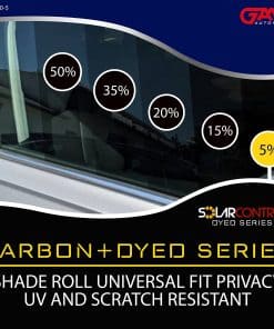 Construcción: Partículas de carbono de grado más alto con PET ultra claro óptico. Color: Negro estándar. Capa: 2-ply. Grosor: 1,5 mil. Resistente a los arañazos: Sí. Reflectante: No. Metal: No. Bloqueo de rayos ultravioleta.