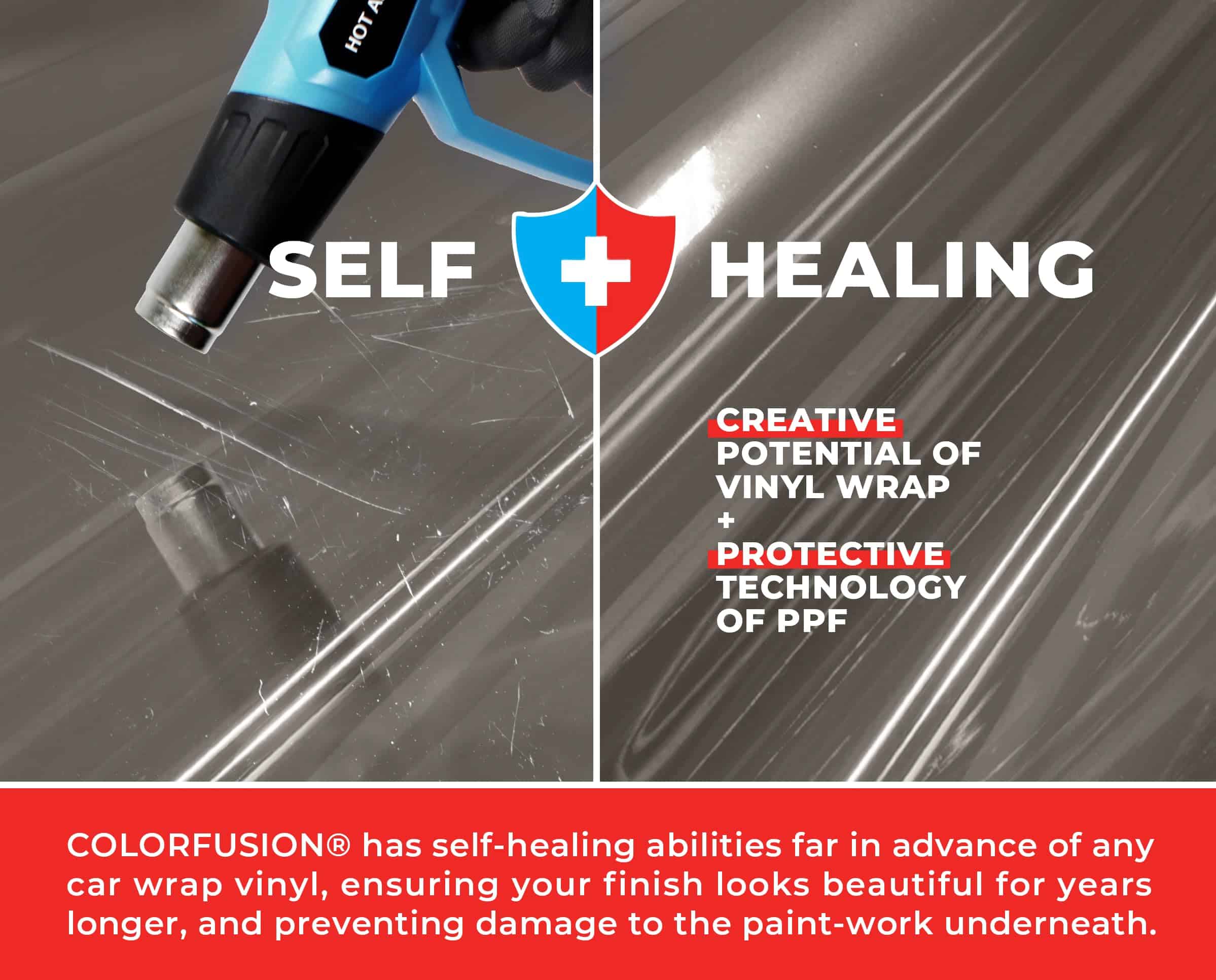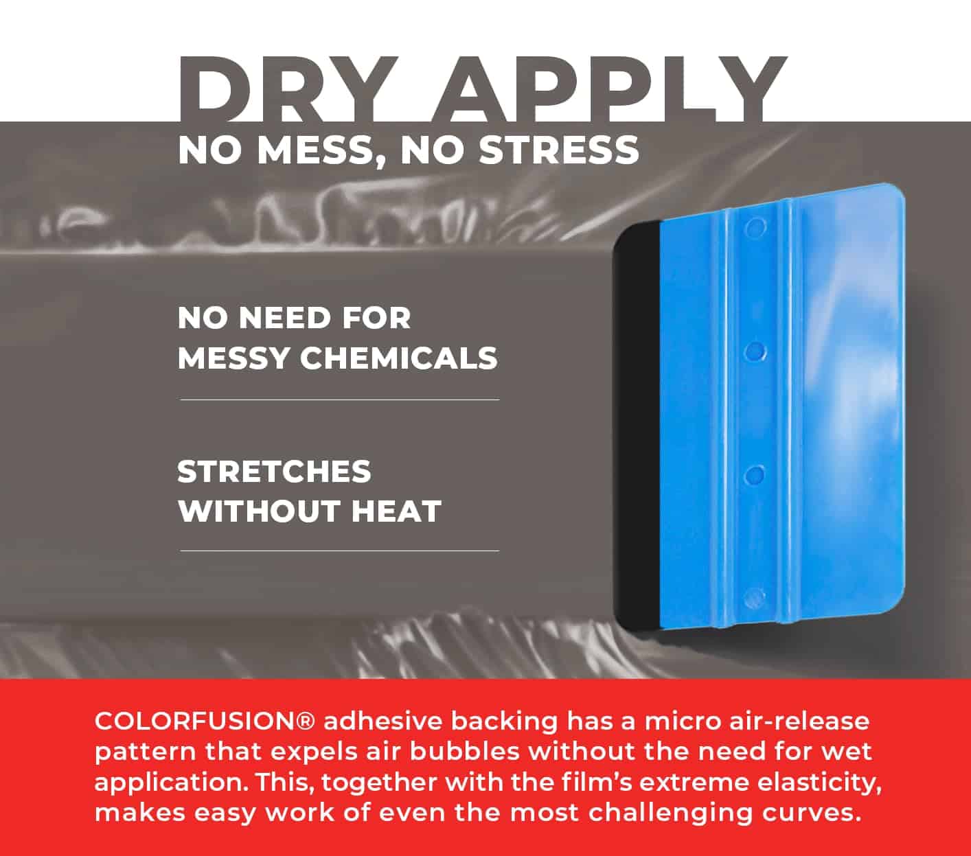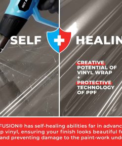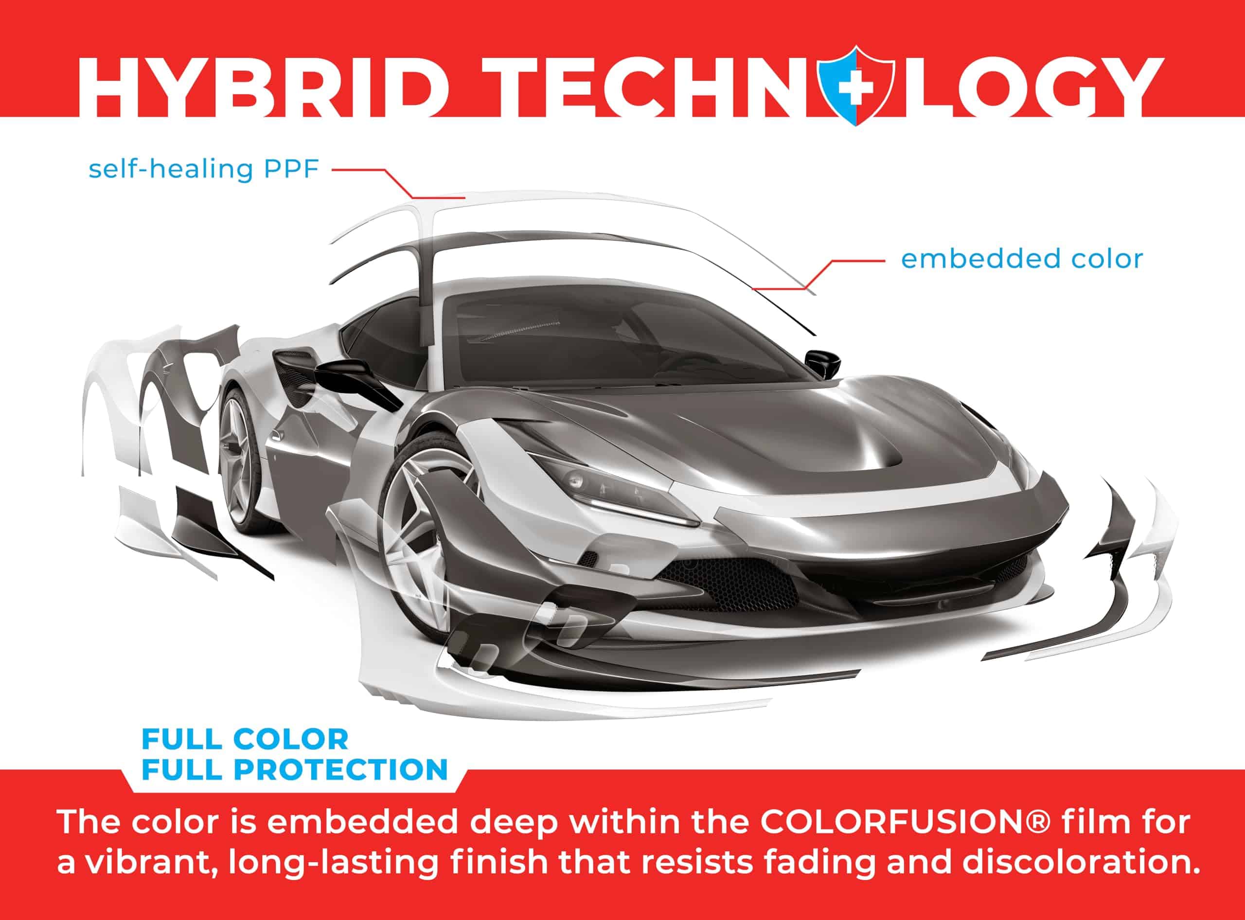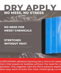 ColorFusion by VViViD combina la durabilidad de la Película de Protección de Pintura (PPF), con la belleza llamativa de los envoltorios líderes en la industria de VViViD, asegurando que el acabado de sus vehículos se mantenga impecable el doble de tiempo que otros films. Nuestro respaldo adhesivo tiene un patrón micro de liberación de aire que expulsa las burbujas de aire sin necesidad de aplicación húmeda, a diferencia de otros films PPF. Esto, junto con la extrema elasticidad del film, hace que incluso las curvas más desafiantes sean fáciles de manejar. ColorFusion tiene capacidades de auto-reparación muy avanzadas con respecto a cualquier vinilo para envoltorio de automóvil, asegurando que su acabado se vea hermoso 2 veces más que otros envoltorios, y evitando daños en la pintura debajo. Aplique suavemente calor con una pistola de calor, y observe cómo su envoltura de ColorFusion se cura de arañazos que serían el fin para cualquier otro film. El color está incrustado profundamente en este film para un acabado vibrante y duradero que resiste la decoloración. ColorFusion tiene un adhesivo completamente seguro para la superficie, activado por calor, y removible que nunca atravesará o disolverá las capas superiores de la pintura de su automóvil, a diferencia de productos de menor calidad. ColorFusion es simplemente el envoltorio automotriz más avanzado que puede tener. Diferencias de instalación: ColorFusion presenta la fórmula ULTRA-FINISH patentada por VViViD. Esto hace que el film sea más difícil de preparar e instalar ya que cada imperfección se magnifica. Aquí tienes algunos consejos para obtener el mejor acabado de tu film de ColorFusion: 1. Barra de arcilla: Hasta ahora, las barras de arcilla no han sido necesarias para envoltorios de autos, pero con el aumento dramático de claridad en el acabado, pequeñas partículas y contaminantes superficiales se verán de manera exponencial. Aunque todavía no es necesario para la integridad del envoltorio, se sugiere encarecidamente emplear una barra de arcilla para una mayor claridad en la superficie. 2. Liberación de aire de nano: Esto mejora el acabado, sin embargo, puede ser más difícil eliminar el aire atrapado en superficies grandes. Se sugiere aplicar el film manteniendo el exceso de material fuera de la superficie. Esto evitará el atrapamiento de aire y distorsiones en el film. En caso de burbujas, presione suavemente la burbuja o perfore para dejar escapar el aire. Especificaciones: Grosor: 7.5 mils. Acabado: Ultra-Finish. Aplicación: Seco. Características: Liberación de aire de nano, Topcoat UV Ultra-Finish, acabado auto-reparador mejorado. Adhesivo: Acrílico basado en, reposicionable, Adhesivo sensible a la presión. Durabilidad esperada: 2 veces más larga que la vida útil de otros envoltorios de vinilo automotriz. Conformabilidad: Muy alta. Nivel de habilidad necesario: Medio.