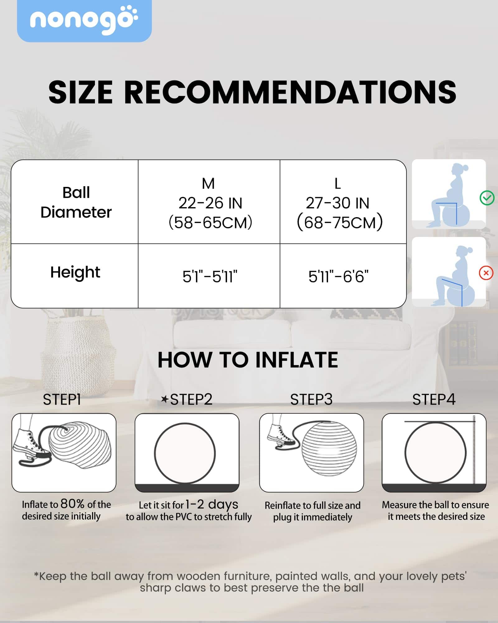 Pelota de Ejercicio nonogo para Entrenar con Banda de Resistencia – Pelota de Yoga para Parto, Fisioterapia, Equilibrio, Estabilidad, Fitness, Silla de Oficina con Bomba Rápida