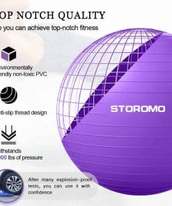 Pelota de Ejercicio STOROMO, Pelota de Yoga (con Tutorial de Ejercicios) – Extra Gruesa y Antideslizante, Soporta 2500 lbs, Pelota de Ejercicio para Embarazo y Equilibrio de Estabilidad (Púrpura, 55cm/21.6in)