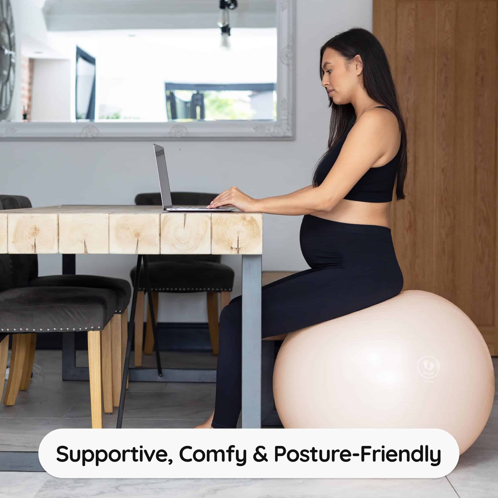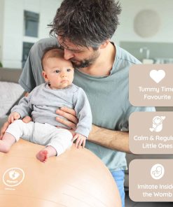 4. RECUPERACIÓN POSPARTO y TIEMPO BOCA ABAJO! Usa la pelota para mayor comodidad y aliviar la presión en las dolorosas suturas. ¡Acelera tu recuperación posparto de la diástasis recti y úsala para ayudar a reconstruir tu suelo pélvico! ¡Diviértete con tu bebé y crea un vínculo durante el tiempo boca abajo!