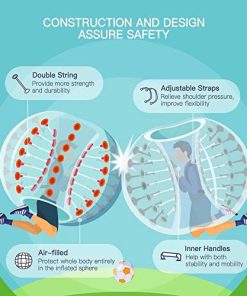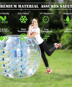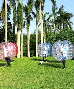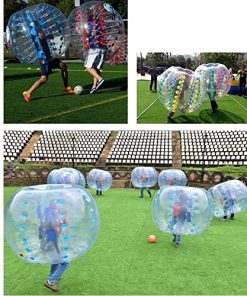 Edad mínima recomendada por el fabricante: 6 años. ‘Pelota de parachoques de fútbol burbuja inflable de 5 pies para adultos gigantes humanos y al aire libre Enriquece tu vida, mejora los sentimientos entre tú y tu familia y amigos, mantén tu estado físico al mismo tiempo. Alta calidad y económico, convivencia sana y feliz, te lo mereces. Características: 1. Material duradero: la pelota de parachoques inflable está hecha de PVC de 0.8MM, no tóxico, inodoro, mejor sellado para uso a largo plazo. 2. Garantía de seguridad: esta bola burbuja tiene 2 asas en el interior y 2 correas de hombro ajustables, más seguras y convenientes. 3. Fácil de usar: la pelota Zorb de parachoques se puede inflar o desinflar en 1-2 minutos con una bomba de aire eléctrica (no incluida). Especificaciones: 1. Material: PVC 2. Manijas: 2 3. Diámetro total: 5 pies 4. Diámetro interno: 2.13 pies 5. Altura del producto: 3.94 pies 6. Altura del jugador adecuada: 5-6.2 pies 7. Paquete incluye: 1 x Pelota 2 x Piezas de reparación. Por qué elegir la pelota de parachoques para jugar juegos Porque puedes pasar un rato feliz con tu familia y amigos. Y durante el juego, cuando impactas entre sí, puedes experimentar la libertad de rebotar y dar volteretas. Instrucciones del juego: A: Los miembros del equipo se ponen el equipo de la pelota de parachoques Dentro de la zona especificada, se acoplan colisiones, Después de que el oponente sea expulsado del área prescrita, ganarás B: Todos los equipos ingresaron a la pelota de burbuja primero, luego rascar el fútbol, choque racional, la cuenta de goles gana. Como una pelota de parachoques divertida, no un objetivo final, pateó al oponente fue interesante Presta atención: 1. La bola de parachoques cabe para adultos y adolescentes. Cuando nuestro producto está en uso, no debe usarse en suelo afilado o en suelo común 2. Compruebe que el producto esté bien sellado antes de usarlo, vea si el asa es segura y firme Adicionalmente, la facilidad de uso también es una de las ventajas más importantes. Esta bola de zorb de parachoques se puede inflar o desinflar en 1-2 minutos, sin importar el tipo de evento que estés planeando, desde un cumpleaños en el patio trasero hasta un evento deportivo lleno de estadios o una fiesta en la playa, la pelota de parachoques te traerá un día inolvidable.’