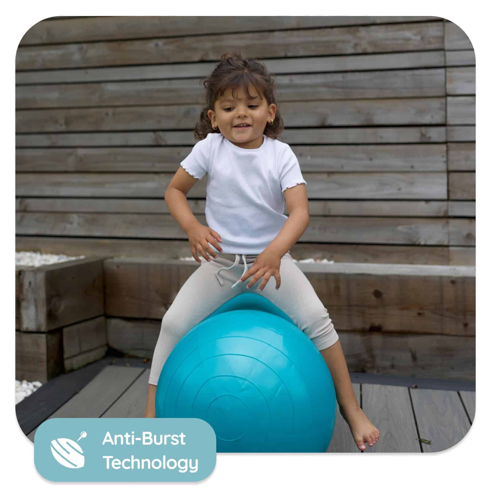 4. 5 Veces Más Fuerte que una Pelota de Maní Regular: Nuestra textura premium ha sido probada para proporcionar superior fuerza y estabilidad. Esto significa que nuestra pelota limita el movimiento solo hacia adelante y hacia atrás, creando un espacio seguro para la cabeza de su hijo.