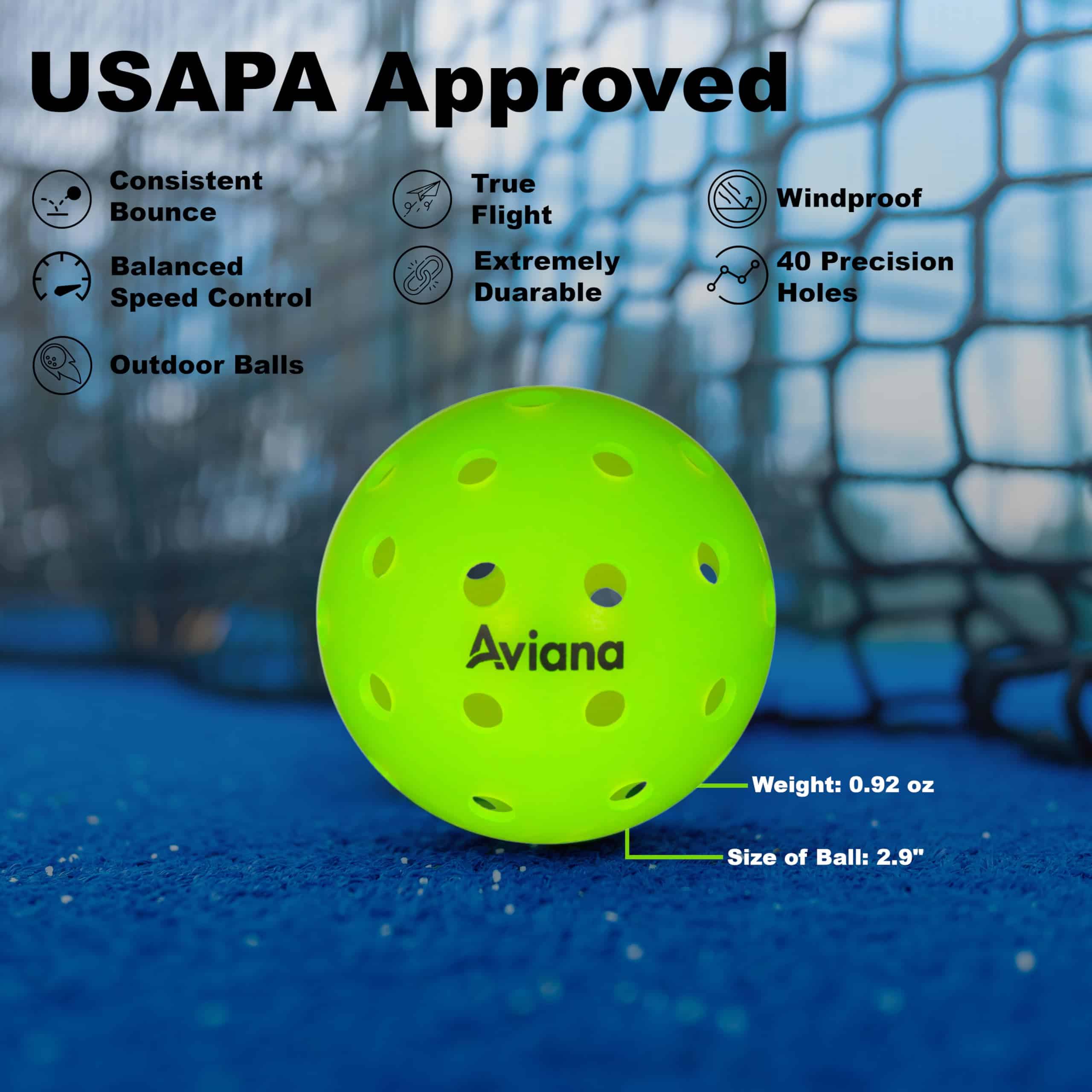Pelotas de píckleball Pro Aviana 40 Agujeros Premium para
