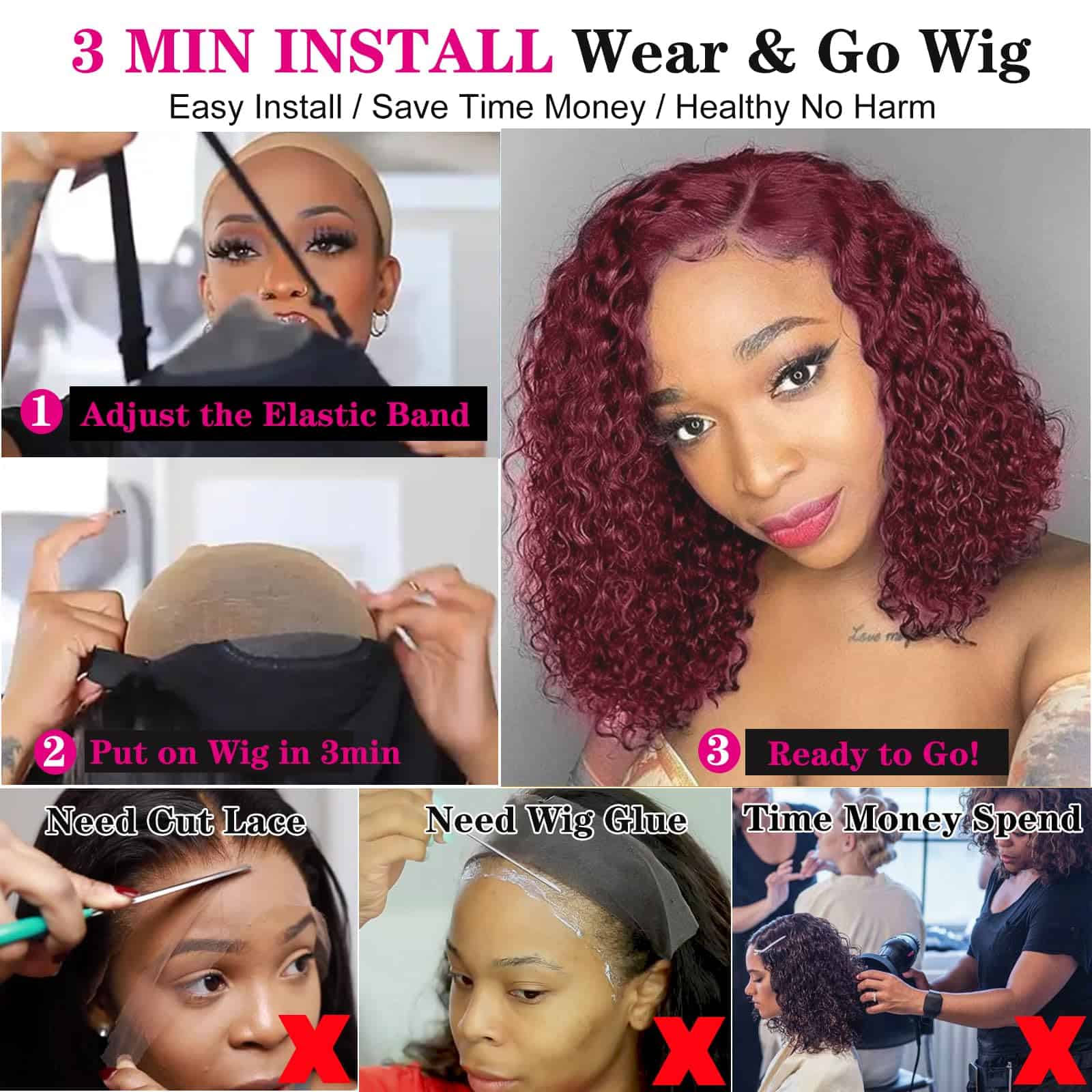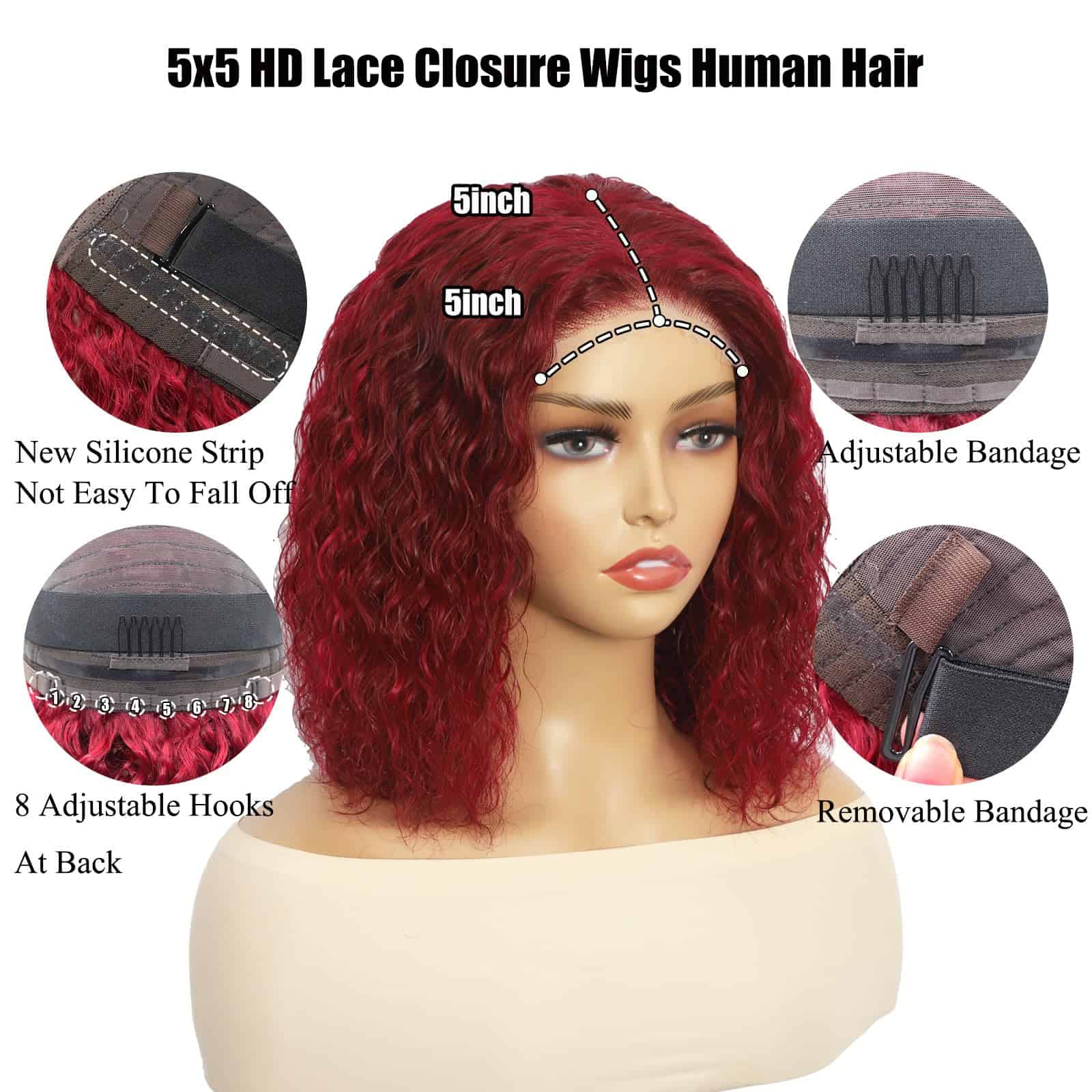 Peluca Bob de 5×5 de Cierre Pelo Humano Ondulado sin