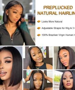 Peluca Bob de Cabello Humano Smartinnov, Negro Natural