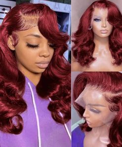 Peluca Bob Ondulado de Cuerpo de Cabello Humano Rojiza 13×4