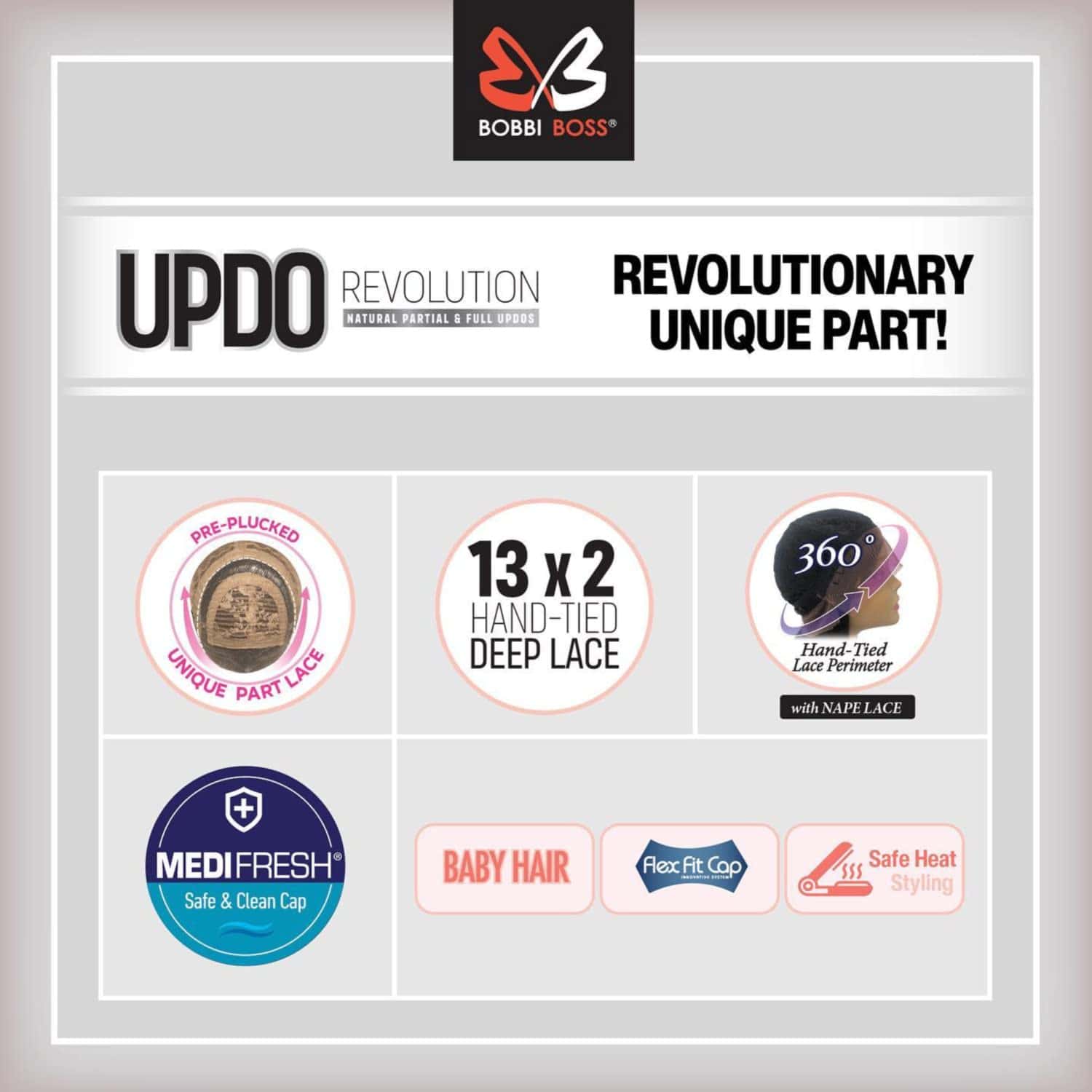 Peluca frontal de encaje Bobbi Boss 360 13X2 Updo Revolution MLF418 Eleanor Color Mostrado: HLPURP/GRN «Los colores de la imagen y el producto real pueden variar ligeramente según la resolución de la pantalla.» BOSS LACE Wig de BOBBI BOSS está diseñada para dar una línea de cabello natural con un encaje que se mezcla perfectamente. Los mechones individuales están anudados a mano para un estilo que se ve natural y con movimiento creíble. Disponible en una amplia gama de colores y estilos clásicos y modernos. Cuidado y Mantenimiento 1. Peinar suavemente con un peine de dientes anchos 2. Lavar según sea necesario, evitando movimientos circulares 3. Secar al aire plano sobre una toalla o soporte para pelucas
