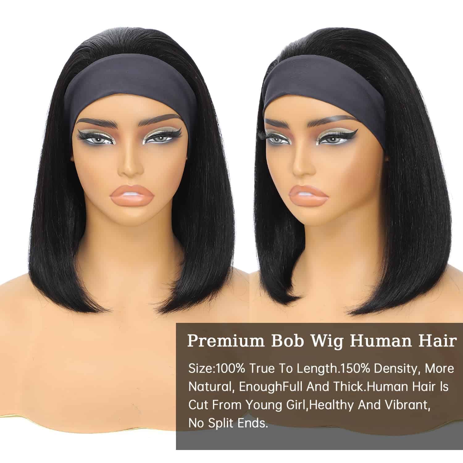 Peluca de Diadema de Cabello Humano Recto Bob de 14