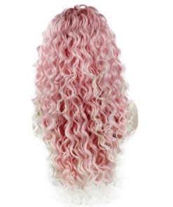Peluca de Encaje Frontal Rizado Blanco con Puntas Rosadas