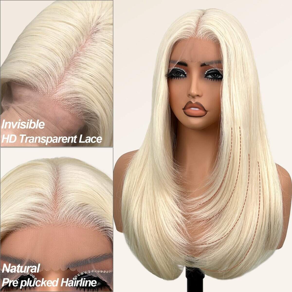 1. Material de Alta Calidad: Hecho de cabello de fibra sintética de alta calidad, resistente al calor, con una temperatura máxima de 180/356. La longitud de la peluca es de 26 pulgadas y pesa 230 g, el encaje frontal es suave y con aspecto natural, con brillo natural y densidad natural, se siente tan suave como cabello humano, y el costo es solo una quinta parte del cabello humano. La peluca viene en una onda corporal perezosa y encantadora que te hace lucir linda y sexy, liberando tu encanto infinito.