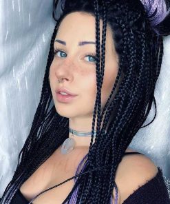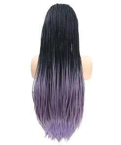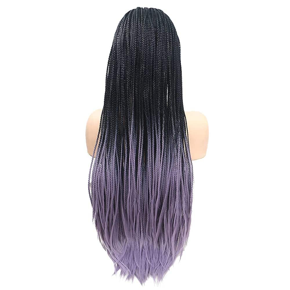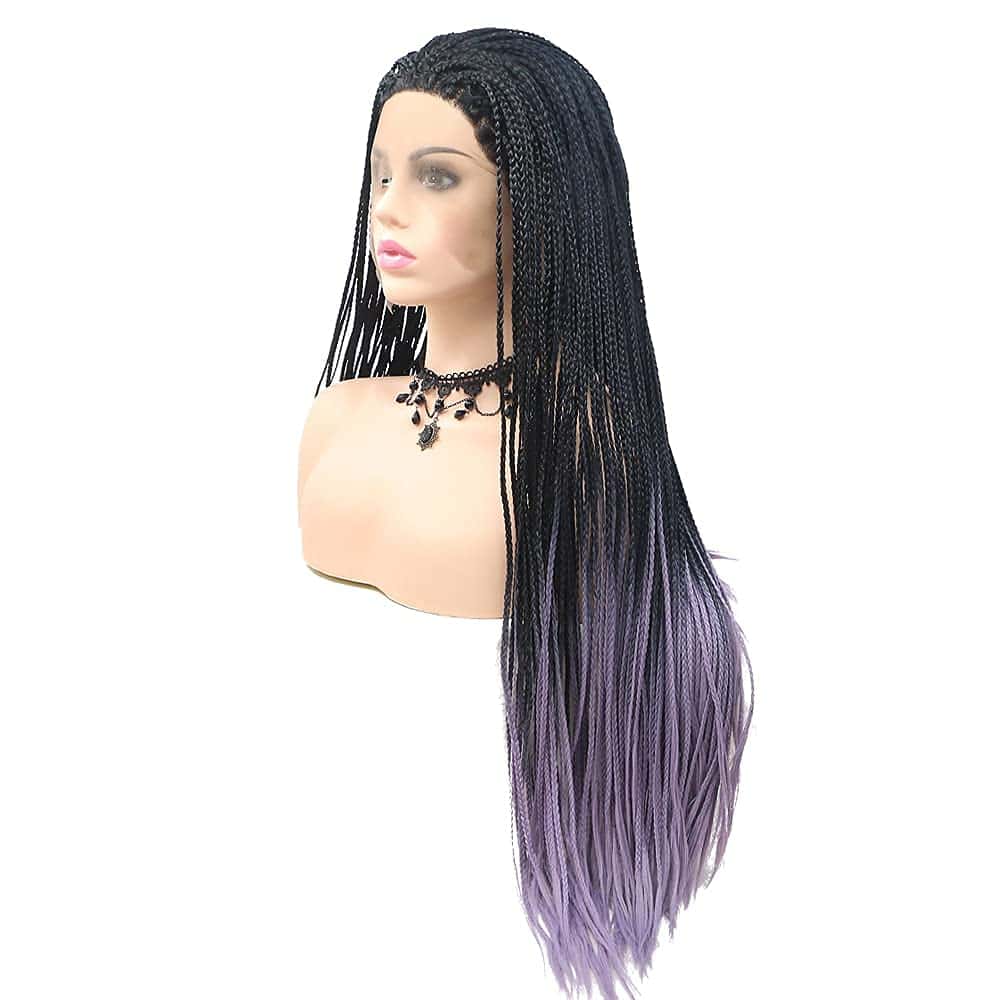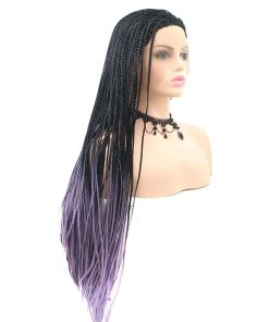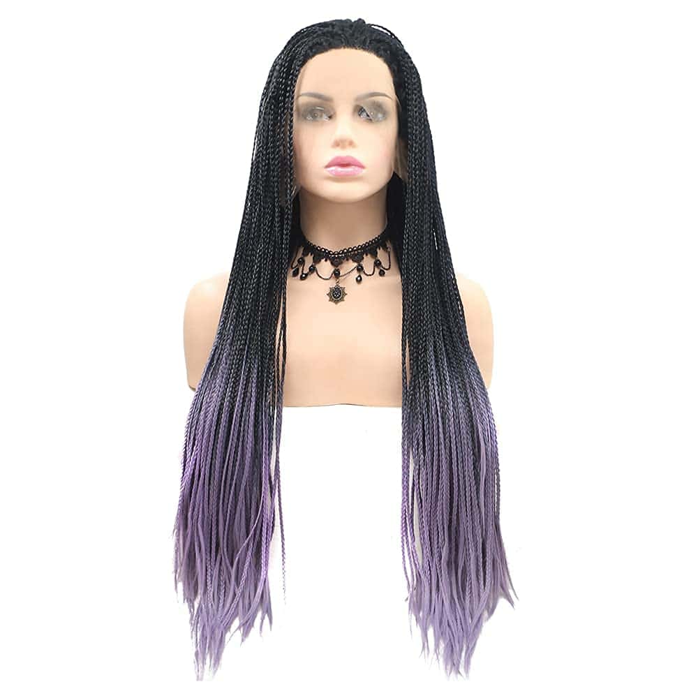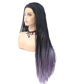 Peluca de Encaje Sintético Trenzado Negro Ombre Púrpura