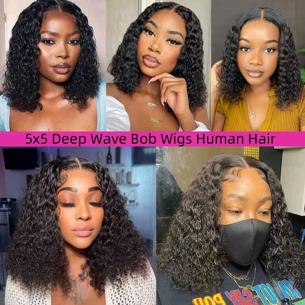 5. Longitud de Peluca de Cierre de Encaje HD 5×5: La Peluca Bob de Onda Profunda de Pelo Humano es Verdadera en Longitud, Pelucas de Pelo Rizado Corto para Mujeres Negras Pelucas de Pelo Humano sin Pegamento Pre Desplumado.