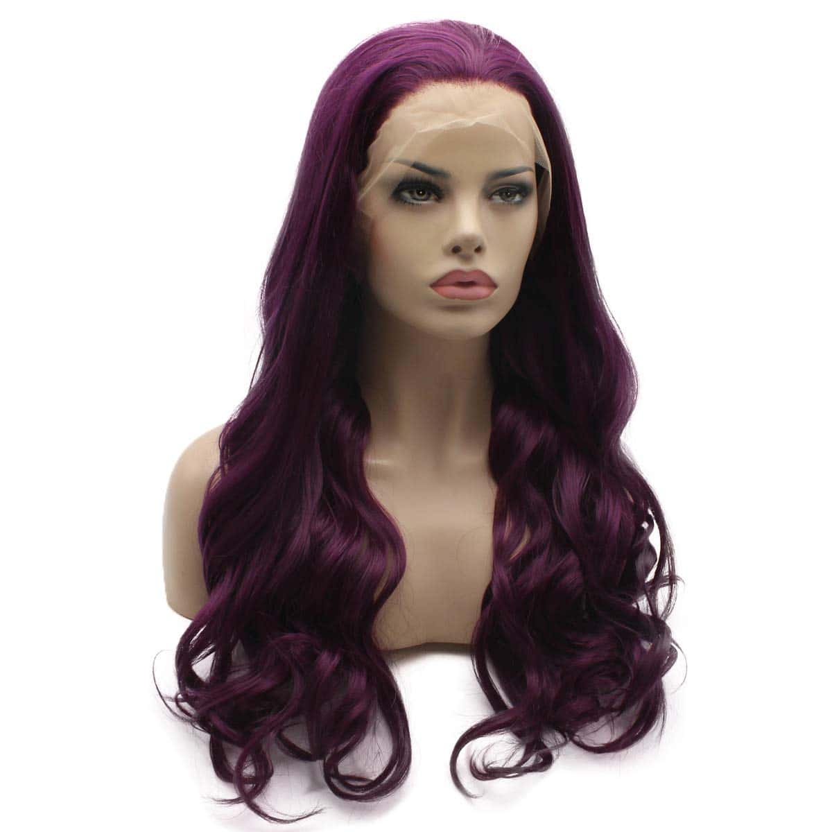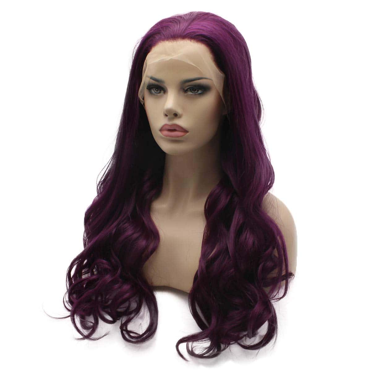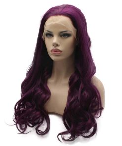 Peluca Larga Ondulada Morada Medio Trenzada de Encaje