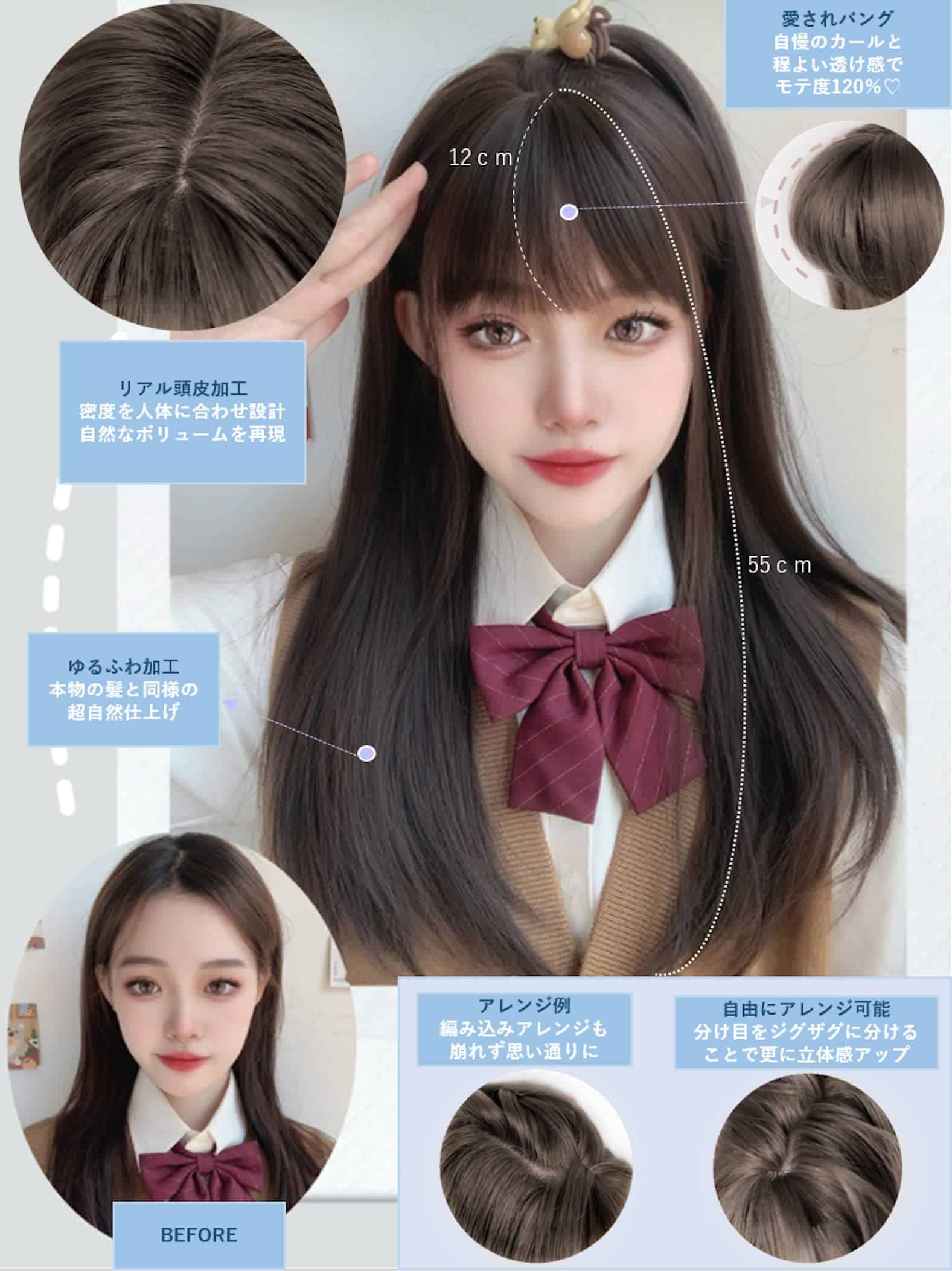 Peluca original para mujer de calidad premium, semi-larga y con efecto facial pequeño. Diseño de estilo activo producido por el top estilista. Color Sierra Marrón St DY36A.