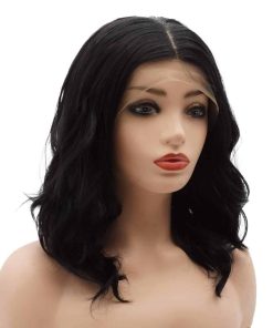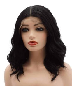 1. Peluca de encaje sintético rizado corto de 14 pulgadas en color negro.