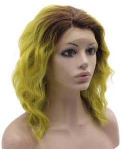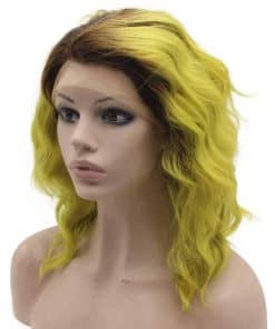 Peluca Ombre Amarilla hasta los Hombros Mxangel de Encaje