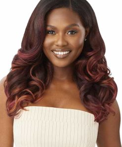 Peluca Outre Big Beautiful Hair – Leave Out – Dominican Body Curl 20″ en color DR GINGER TOFFEE. Esta peluca está hecha con una mezcla de cabello 100% humano premium que ofrece un aspecto natural. Tiene una abertura en forma de U más estrecha para que necesites menos cabello propio. Puedes colocar la parte en cualquier lugar que desees gracias a su versatilidad. Viene con clips y peines para una mayor seguridad mientras la usas.