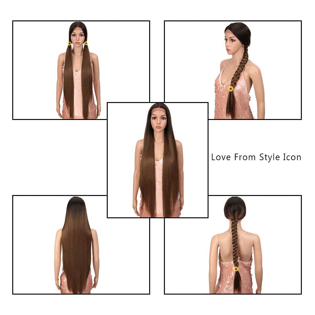 Peluca Recta Larga de 38 Pulgadas con Encaje Frontal en