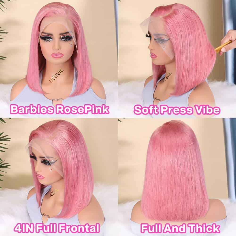 4. Peluca de Bob Rosa de Cabello Humano Cortado de Joven Chica 100% Cabello Humano Virgen Brasileño sin Procesar. El Cabello de Joven Chica es muy Natural y Saludable, Suave y Esponjoso, sin Caída ni Enredos.