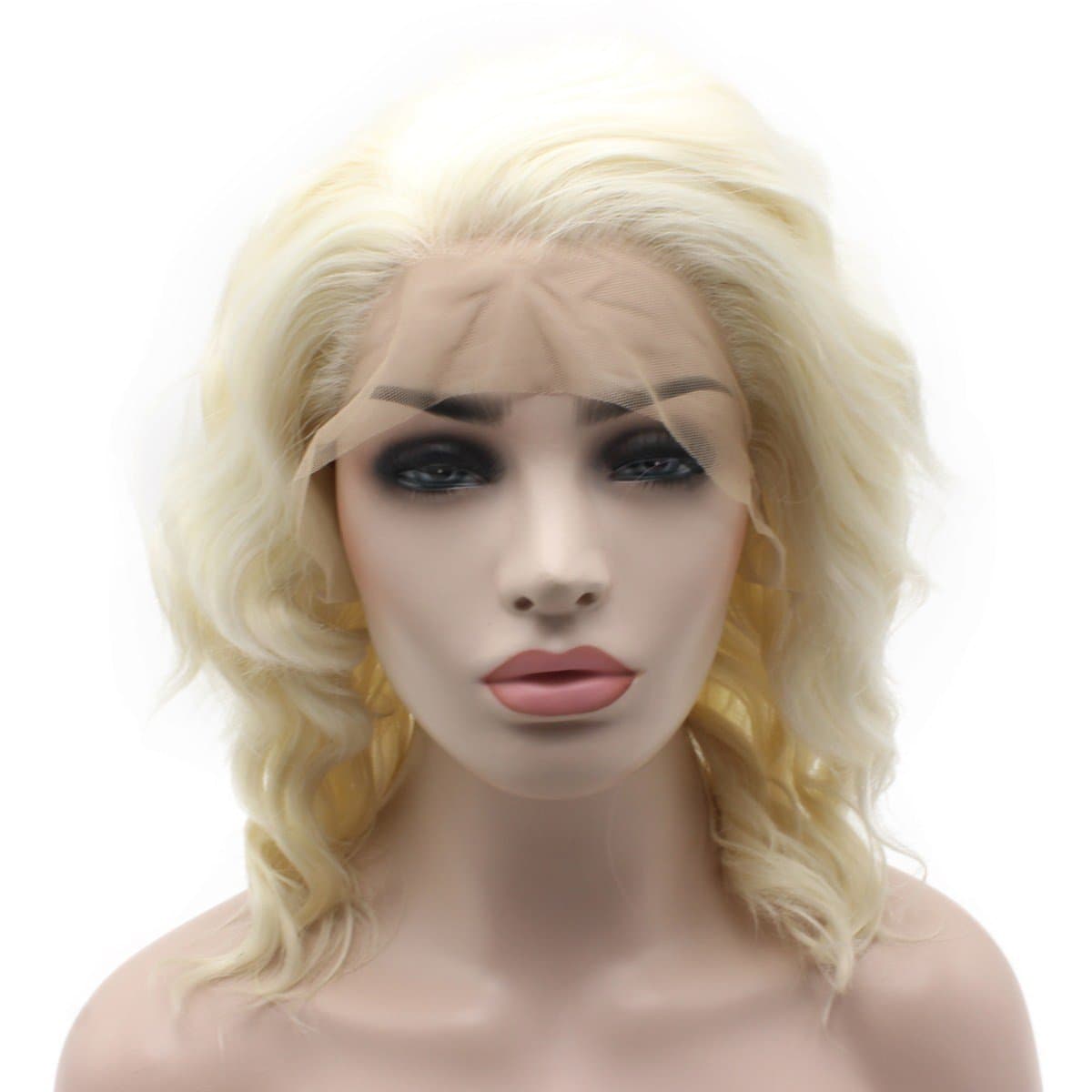Peluca rubia ondulada a la altura del hombro de encaje