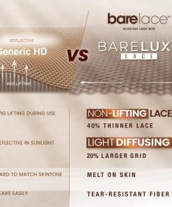 Marca de los creadores de What Lace. Peluca de cabello sintético Sensationnel Bare lace de 13 x 6 pulgadas, encaje frontal preplucked sin pegamento, rejilla más grande del 2040 más delgada, peluca de encaje que no se levanta. Partición libre en la línea del cabello de 13 x 6 pulgadas con densidad natural preplucked de 180 grados con cabello de bebé de oreja a oreja. Cuenta con un patrón de rejilla un 20 por ciento más grande y un diseño de encaje un 40 por ciento más delgado que permite una transparencia avanzada, no reflectante y sin levantamiento del encaje. Combinado con una gorra de malla transpirable con banda de peluca sin pegamento y revestimiento de silicona para una instalación segura. Ajuste amigable para cabezas de tamaño pequeño a grande. Sin pegamento y perfecto para principiantes o peluca de bricolaje fácil. Disponible en estilos de cabello recto, ondulado o rizado, en opciones de cabello corto o largo, colores básicos y opciones de color especial destacado en secreto.