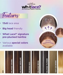 Peluca de encaje frontal sintética Sensationnel What Lace 13X6 Glenna, diseñada sin pegamento para una mayor comodidad. Cuenta con un área de encaje frontal de 13 x 6 pulgadas, lo que permite un peinado libre y natural. El cabello pre-plumado con densidad natural y baby hair brinda un aspecto realista. Fabricada con cabello sintético de alta calidad, resistente al calor y con un área frontal en encaje suizo hecho a mano. Ajustable para adaptarse a cabezas de diversos tamaños gracias al encaje HD transparente de oreja a oreja, peines metálicos y correas ajustables. Disfruta de diferentes opciones de estilo y color, ya sea con un cabello corto o largo, y con variedad de colores Balayage, Flamboyage y Moneypiece para resaltar tu look.