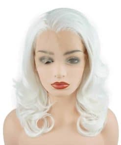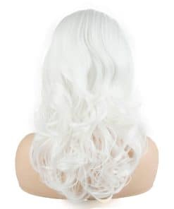 Peluca sintética ondulada a la altura de los hombros de 16 pulgadas en color blanco. Densidad pesada de fibra resistente al calor, sin enredos ni pérdida de cabello, suave y de alta calidad.