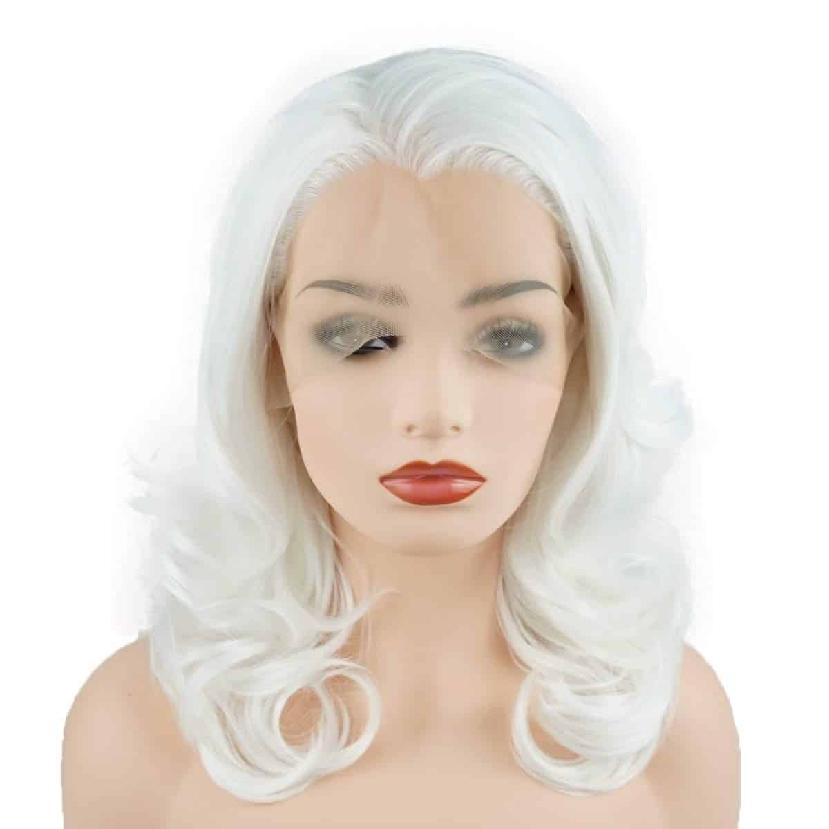 Peluca Sintética de Encaje Frontal Blanco Ondulado a la