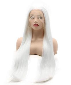 Peluca sintética de encaje frontal recta súper larga de 28