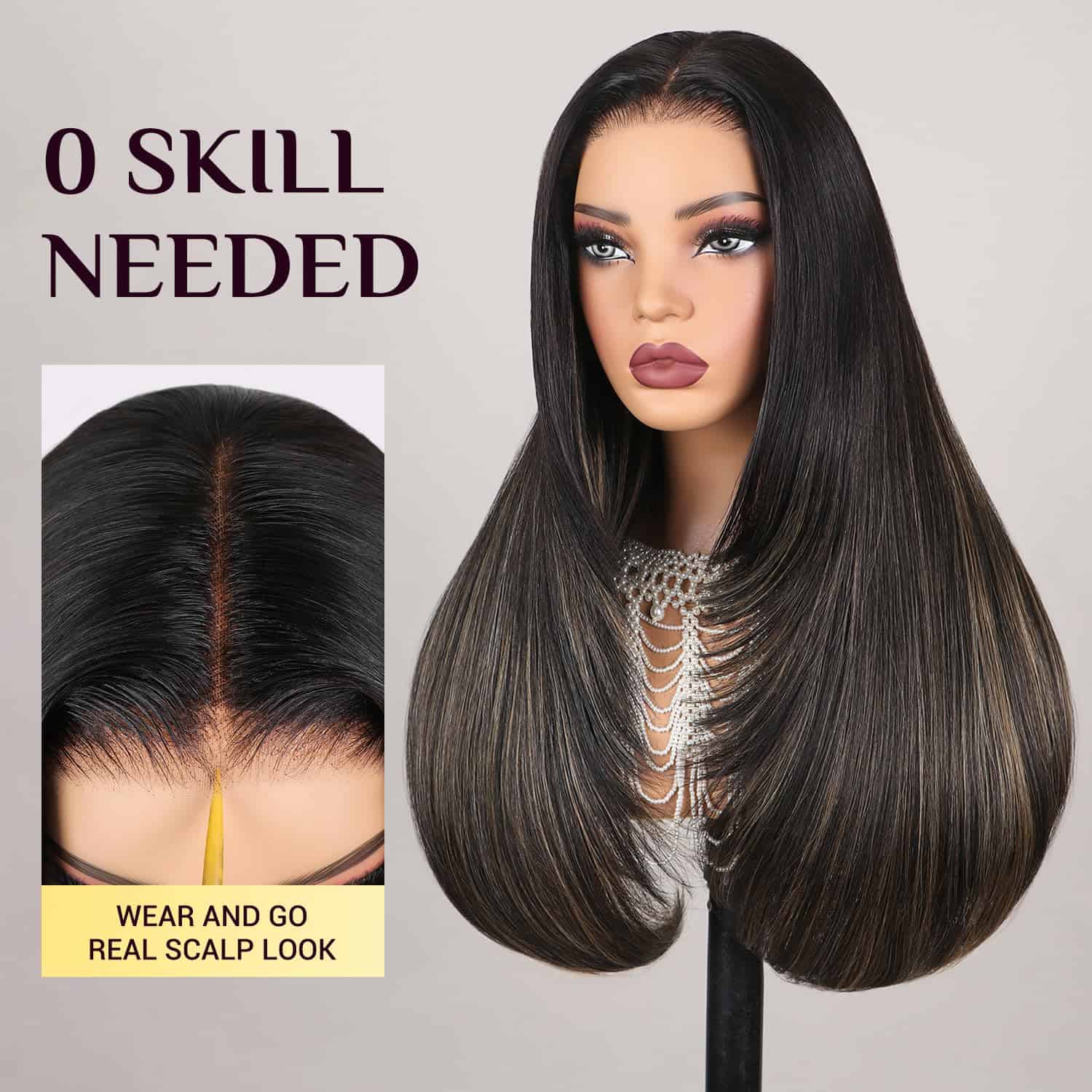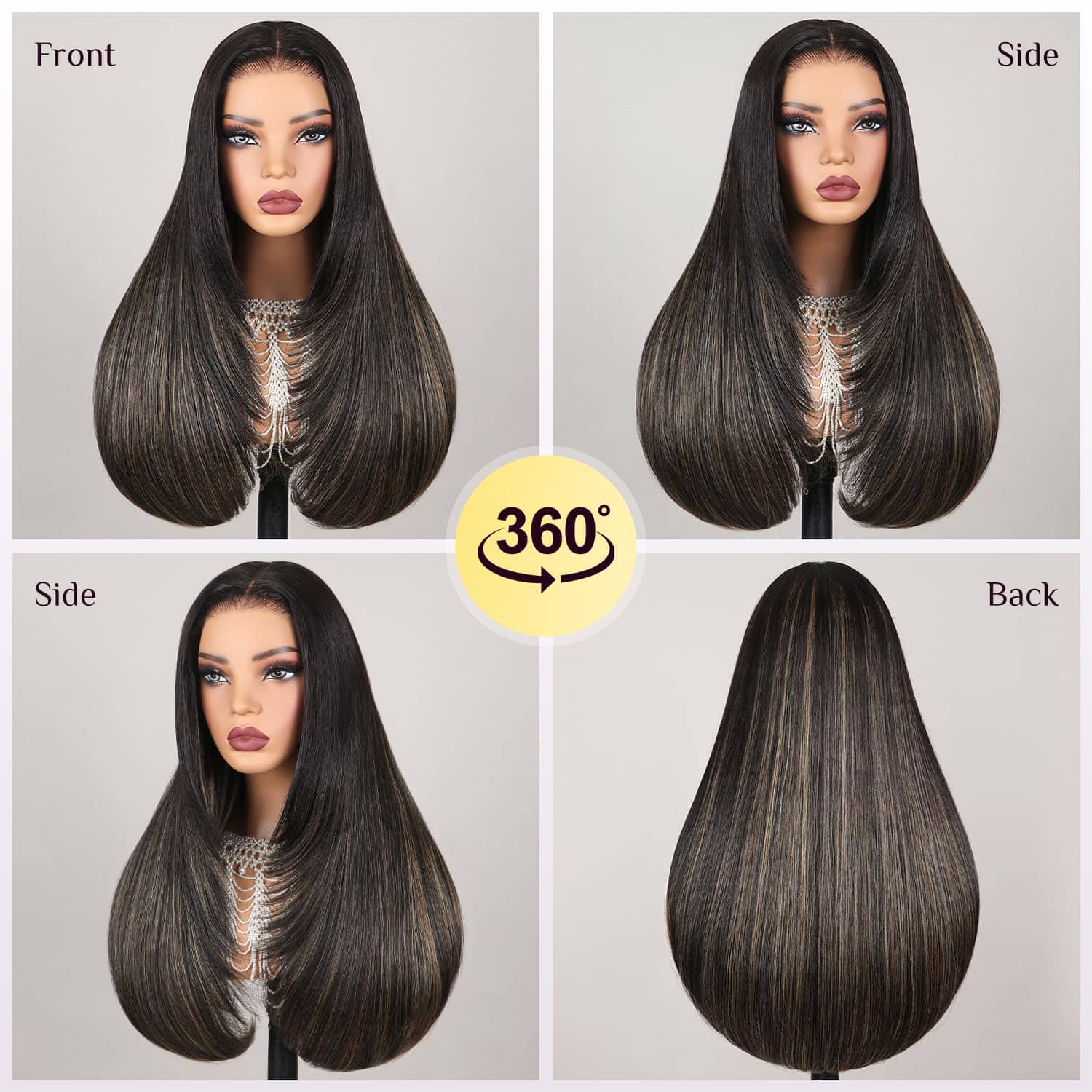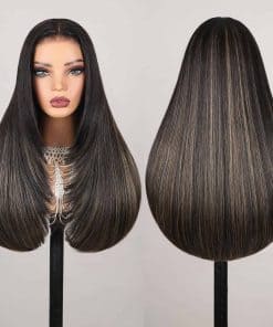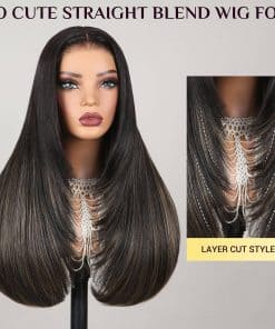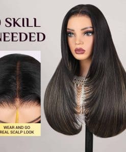 1. PELUCA SIN PEGAMENTO WEAR AND GO: 3 segundos para instalar y 1 segundo para quitarlo, muy fácil de manejar esta peluca recta de mezcla premium de cabello humano, encaje pre cortado, fácil de poner y listo para salir, parte media y amigable para principiantes. 2. PELUCA DE MEZCLA DE CABELLO HUMANO BALAYAGE: peluca de mezcla de cabello humano sintético de color balayage, igual al tacto del cabello humano al 100%, tecnología profesional con mezcla de fibra premium y peluca de encaje de cabello humano remy. 3. PELUCA CON CORTES EN CAPAS: estilo recto con cortes en capas muy de moda que enmarcan muy bien el rostro y dan un aspecto tan lindo, adecuado para cualquier ocasión, y la peluca sin pegamento te brinda más comodidad para instalar. 4. PELUCA DE ENCAJE EN FORMA DE T: peluca de encaje en forma de T 6x6x1, con hendidura profunda, te puede dar un aspecto natural, amigable para la parte media y el área de encaje HD es de cabello humano atado a mano, con nudos preplumados y preaclarados, se funde muy bien con tu piel. 5. Nueva Gorra de Peluca 5D: la talla de la gorra es promedio de 21-22.5 pulgadas, características transpirables con correas de ajuste, tiene clips en la parte superior, trasera y laterales para un ajuste más seguro, puede brindarte una experiencia de instalación cómoda, sin pegamento, sin gel, 260% de alta densidad con color de realce, muy completa y gruesa, se ve tan elegante y hermosa, no dudes en probarla.