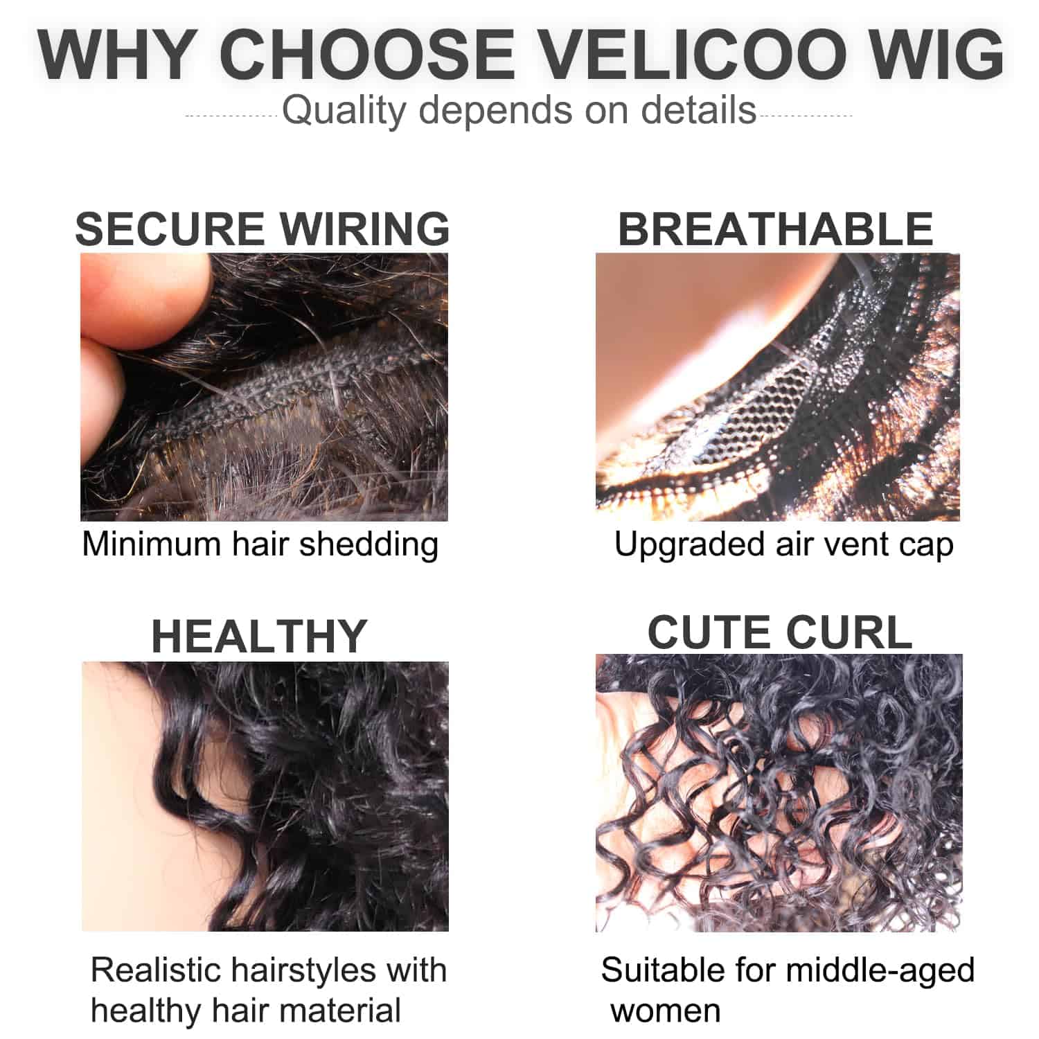 Pelucas Cortas Rizadas Velicoo para Mujeres Negras Peluca