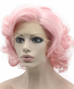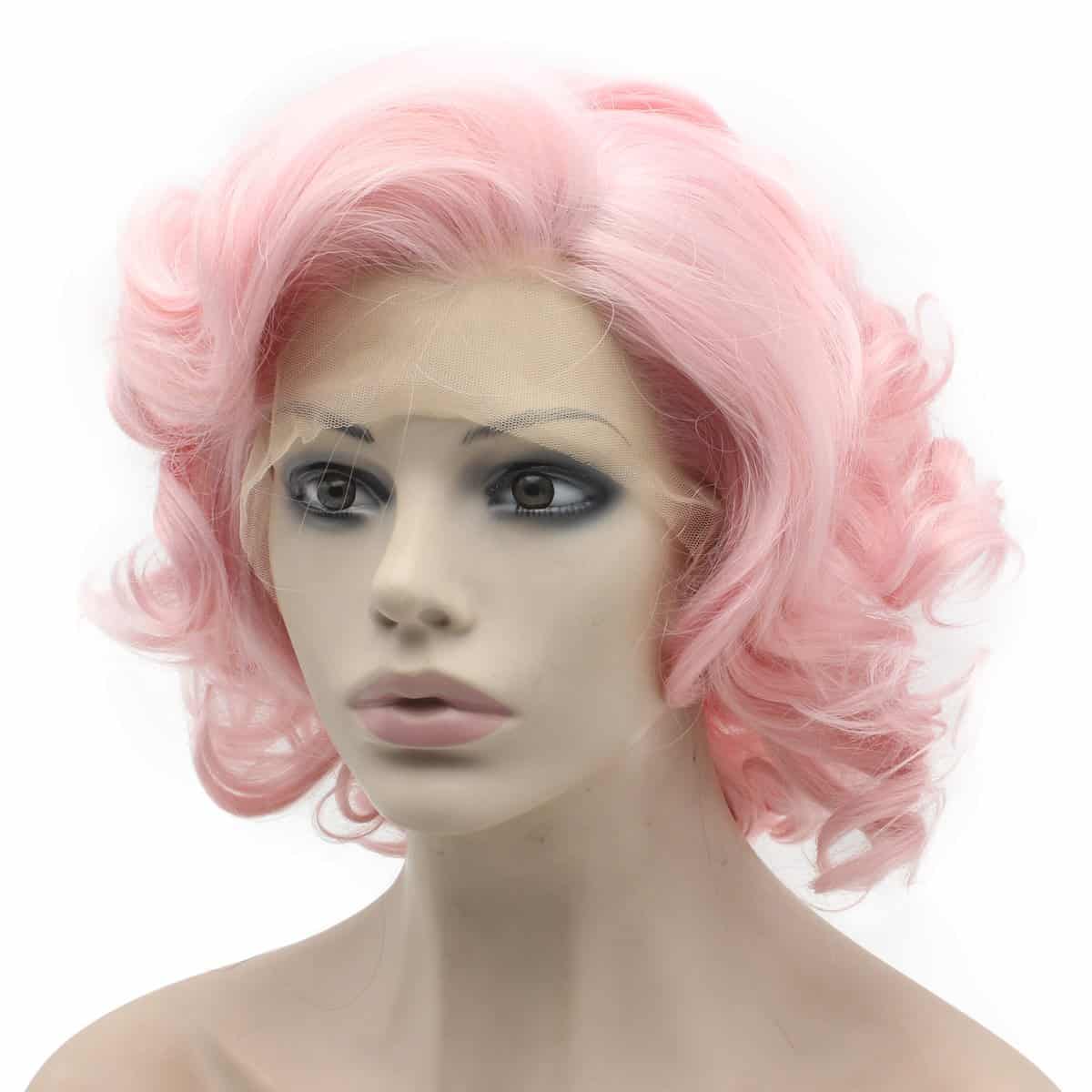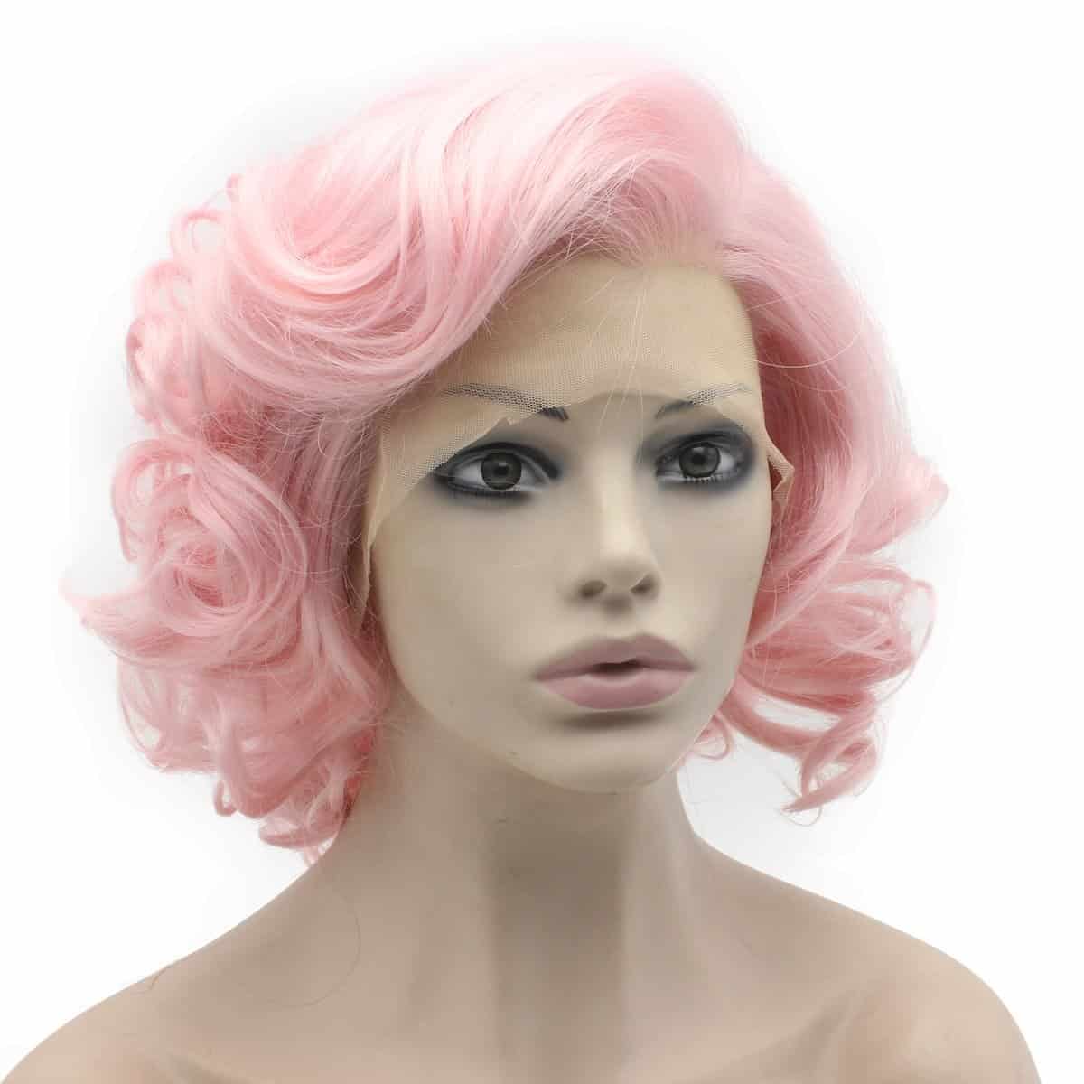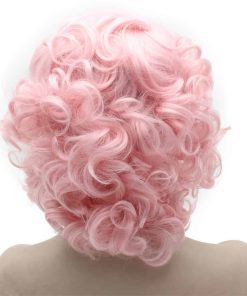 Pelucas cortas y rizadas de color rosa de fibra sintética