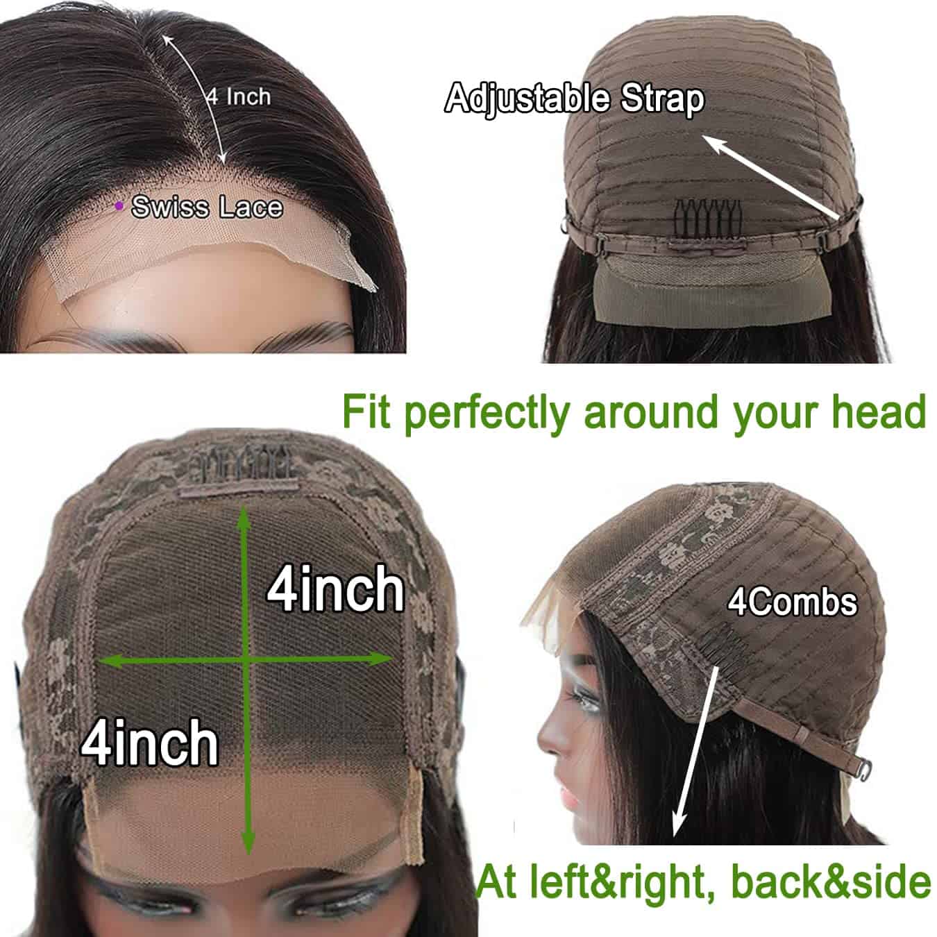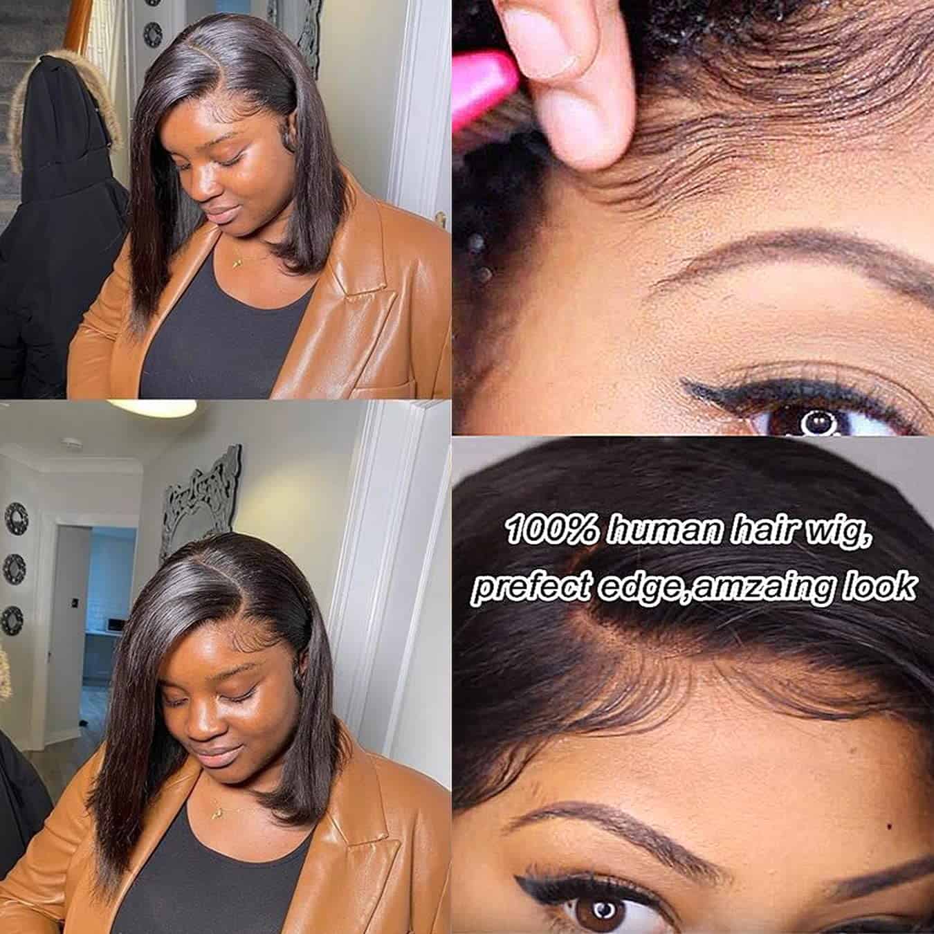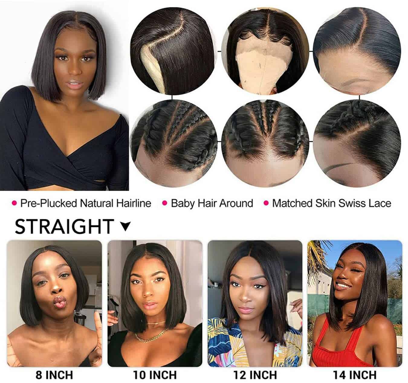 Pelucas de Bob de Pelo Humano Recto de ONECHULY con Cierre