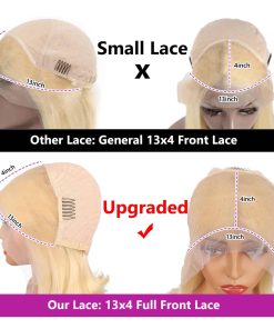 1. Material de la Peluca de Bob Rubia de Cabello Humano: Peluca de Bob Rubia de Cabello Humano Material de la Peluca de Bob de 13×4 Cabello Humano, 613 Color 100% Cabello Humano Virgen Brasileño No Procesado Pelucas Para Mujeres Negras Pre-arrancada en el Contorno del Cabello, Cortado Directamente de la Cabeza de Joven Sana. 2. Calidad de la Peluca de Encaje Frontal de Bob de Cabello Humano: Pelucas de Encaje Frontal Bob con Cabello Humano de Densidad 180%, Pre-arrancada en el Contorno del Cabello, Sin Caída ni Enredo, Sin Olor Extraño, Longitud Real. Se Puede Teñir, Blanquear, Permedir, Alisar y Restilizar. No Mezclado con Pelo de Animal / Fibra Sintética, Solo 100% Cabello Humano Virgen Brasileño. 3. Gorra de Peluca de Bob de Encaje Frontal de Cabello Humano Rubio: Gorra de Peluca de Encaje Frontal de 13×4 HD Swiss Lace. Tamaño de Gorra Promedio de 21.5-23.5 Pulgadas. Correas Ajustables y 3 Peines para una Fácil Colocación y Uso. Se Siente Como Tu Propio Cabello, Adecuado para Fiestas, Cumpleaños, Viajes, Celebraciones, Bodas, Graduaciones y Vida Diaria. 4. Ventaja de la Peluca de Bob de Encaje Frontal de Cabello Humano Recto: Peluca de Encaje Frontal de HD de 13×4 Hecha con Cabello Humano al 100%. Solo un Poco de Caída Como Nuestro Propio Cabello. Más Cómodo al Tacto, No Tiene Olor, No Tiene Espuma, No Tiene Puntas Abiertas y Se Puede Restilizar. 5. Paquete de Pelucas de Bob de Encaje Frontal de Cabello Humano y Política de Devolución: Aceptamos Devoluciones e Intercambios Siempre y Cuando Sea Nuevo (Soporte de Devolución Sin Razón de 1 Mes). Pasos Rápidos y Fáciles de Devolución e Intercambio con Etiquetas de Devolución del Vendedor.