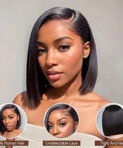 2. Peluca de Cabello Humano Bob Recto con Encaje: Pelucas de cabello humano con encaje transparente de 13×6, pre arrancadas en la línea del cabello natural, invisible, se integran perfectamente en la piel, luciendo más natural, ¡más encantador! ¡Suaves y duraderas! Es adecuada para usar en cualquier ocasión.