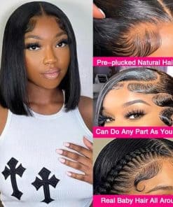2. Peluca Bob Recto: Esta Peluca Bob Frontal de Encaje Transparente Hd 13X4 Humano Puede Adaptarse a Cualquier Tono de Piel, Pelo de Bebé Natural por Todo, Nudos Invisibles Hacen que Sea Más Real y Súper Natural, Puede Hacer Cualquier Parte Lateral, Parte Media o Parte Libre.