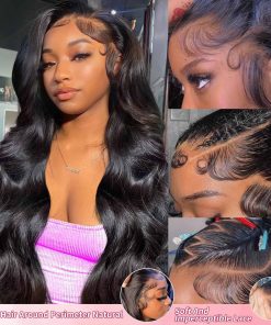 Pelucas de Cabello Humano Onda del Cuerpo 13×4 de Encaje Frontal 28 Pulgadas Walsdi HD Transparente para Mujeres 180 Densidad Pelucas de Cabello Humano Onda del Cuerpo Pre Arrancadas con Pelo de Bebé Negro Natural. La Peluca de Onda del Cuerpo Humano está hecha de Cabello Humano Brasileño. Está cortado de Donantes Jóvenes que son Naturales, Saludables, con Extremos Completos y Saludables, y es Suave y Cómodo contra la Piel. Con una Densidad del 180%, tiene un Patrón Rizado de Bajo Mantenimiento. Esta peluca puede ser Teñida, Restilizada, Prealisada y Decolorada a tu Gusto.