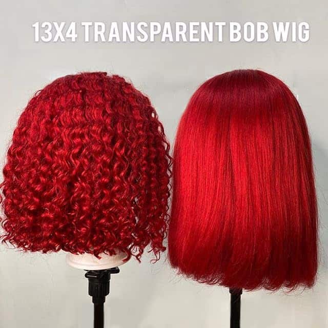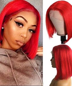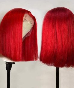 Pelucas de Cabello Humano Virgen, Peluca Bob Roja 180% de
