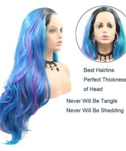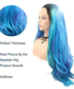 Pelucas de colores para mujeres mezcla de arco iris Pelucas de encaje sintético azul amarillo morado raíces oscuras onduladas largas peluca con cabello de bebé sin pegamento de huella natural resistente al calor de fibra 26 Tipo de cabello: 100 por ciento de pelucas de encaje sintético de alta calidad Fibra resistente al calor de hasta 180 grados centígrados Densidad del cabello: alrededor del 150 por ciento -180 por ciento de densidad promedio Estilo de gorra: gorra de peluca de encaje suizo suave con correas ajustables y 3 peines Tamaño de la gorra: Aproximadamente 22.25 Circunferencia (Medio) con Mitad Atado a Mano Encaje 2.5 Pulgadas de Espacio de Separación en la Parte Delantera Longitud aproximada: Raíz a la punta Longitud total aproximadamente 26 pulgadas en la imagen Todas las pelucas de encaje sintético arrojarán ligeramente cuando te la pongas por primera vez, lo cual es normal. Cómo evitar enredos y caídas No peinar vigorosamente las pelucas. No peinar las pelucas cuando estén mojadas. No lavar la peluca con agua extremadamente caliente. Cómo cuidar las pelucas sintéticas Consejos de cuidado del cabello. 1. Colóquelo naturalmente. 2. Nuestras pelucas están esterilizadas y lavadas, muy limpias, no es necesario lavarlas en 1-2 meses, simplemente agregue un poco de agua en un pulverizador y rocíe sobre la peluca y séquela de forma natural. 3. Desenrede Suavemente retire los enredos con un cepillo o peine para pelucas, trabajando gradualmente desde los extremos hasta la base del cabello. 4. Seque Presione suavemente con una toalla para eliminar el exceso de agua, coloque en un soporte de peluca plegable y permita que se seque al aire. 5. No presione y mantenga seco cuando no lo use. P: ¿Cuánto dura esta peluca R: Realmente se trata de cómo la cuidas. Pueden durar años con el mantenimiento adecuado P: ¿Se enreda fácilmente esta peluca A: Esta peluca gris está hecha con cabello sintético de seda de primera calidad, con un mínimo de derramamiento o enredos, puedes cuidarla como tu propio cabello. P: ¿Puedes poner esta peluca en dos coletas altas A: Si eres bueno tratando de darle forma a las pelucas o estás acostumbrado a cómo