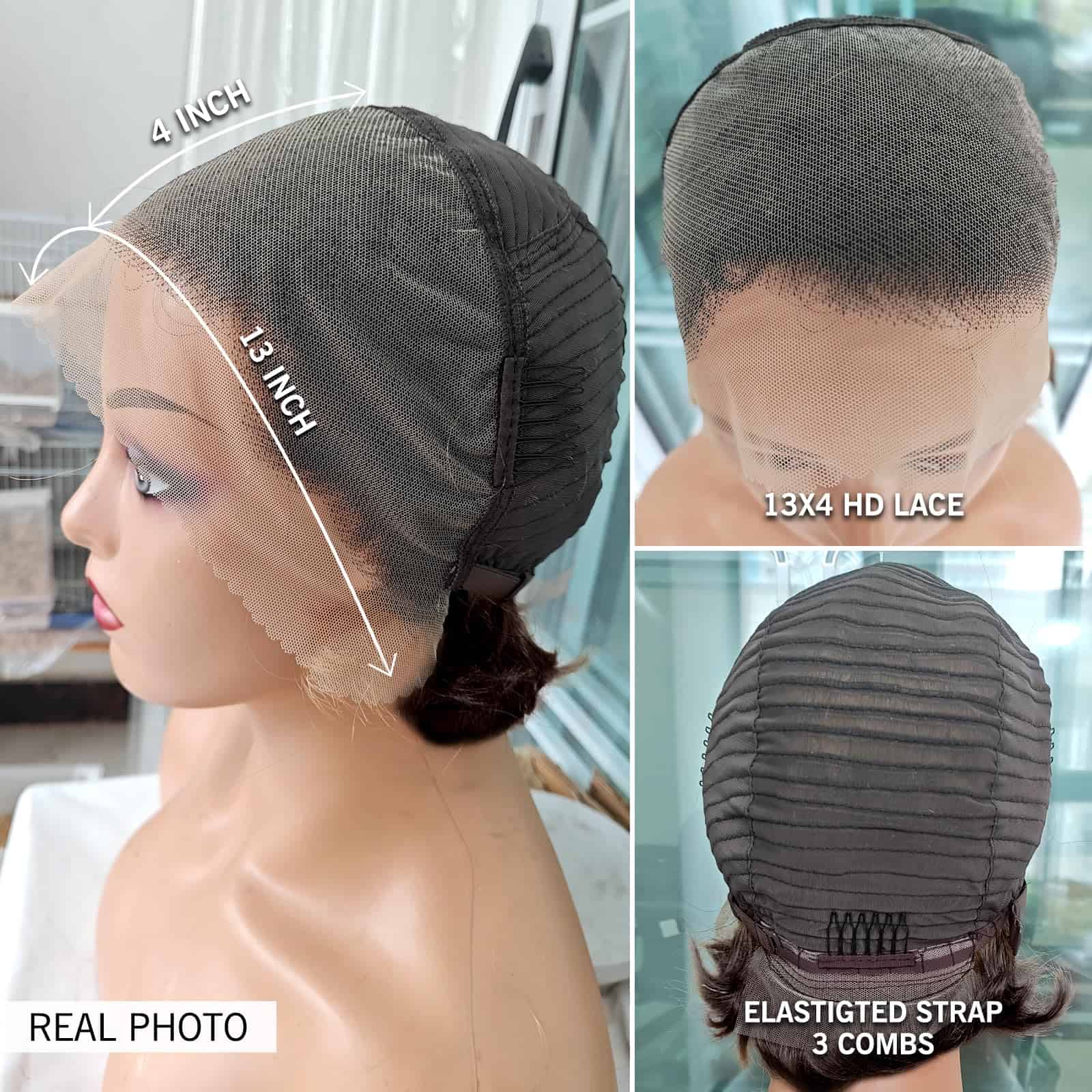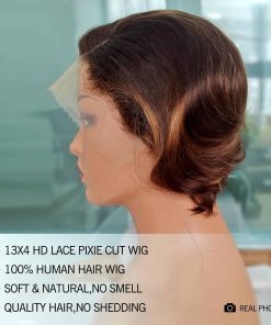 Material de las Pelucas de Corte Pixie de Cabello Humano: Cabello Humano Virgen 100% Brasileño Textura del Cabello: 8 pulgadas de Pelucas Frontales de Encaje Tamaño del Encaje: 13X4 Pelucas Frontales de Encaje Material del Encaje: encaje transparente Densidad del Cabello: 180% de Densidad de la Peluca Color del Cabello: 1B, T1B/33, T1B/33 T1B/27, P4/27, 5 Colores Disponibles, Satisfacen sus Diferentes Solicitudes Calidad del Cabello: Cabello Humano Virgen de Primera Calidad, Sin Caídas, Sin Enredos