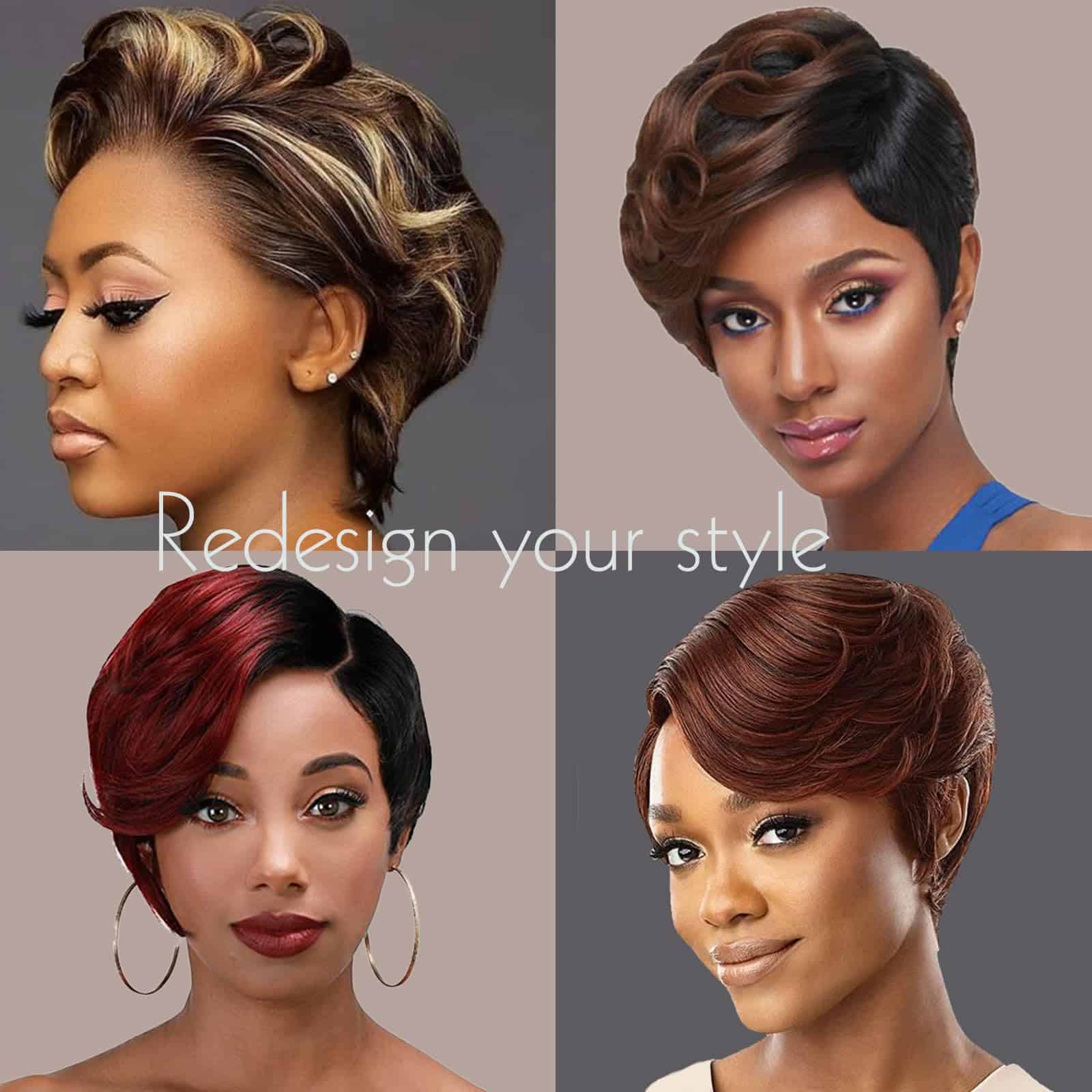 Pelucas de Corte Pixie de Cabello Humano -P4/27