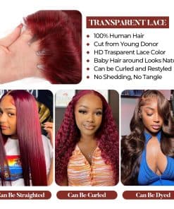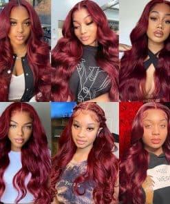 Pelucas de Encaje 99j Borgoña de Cabello Humano 13×4 Onda