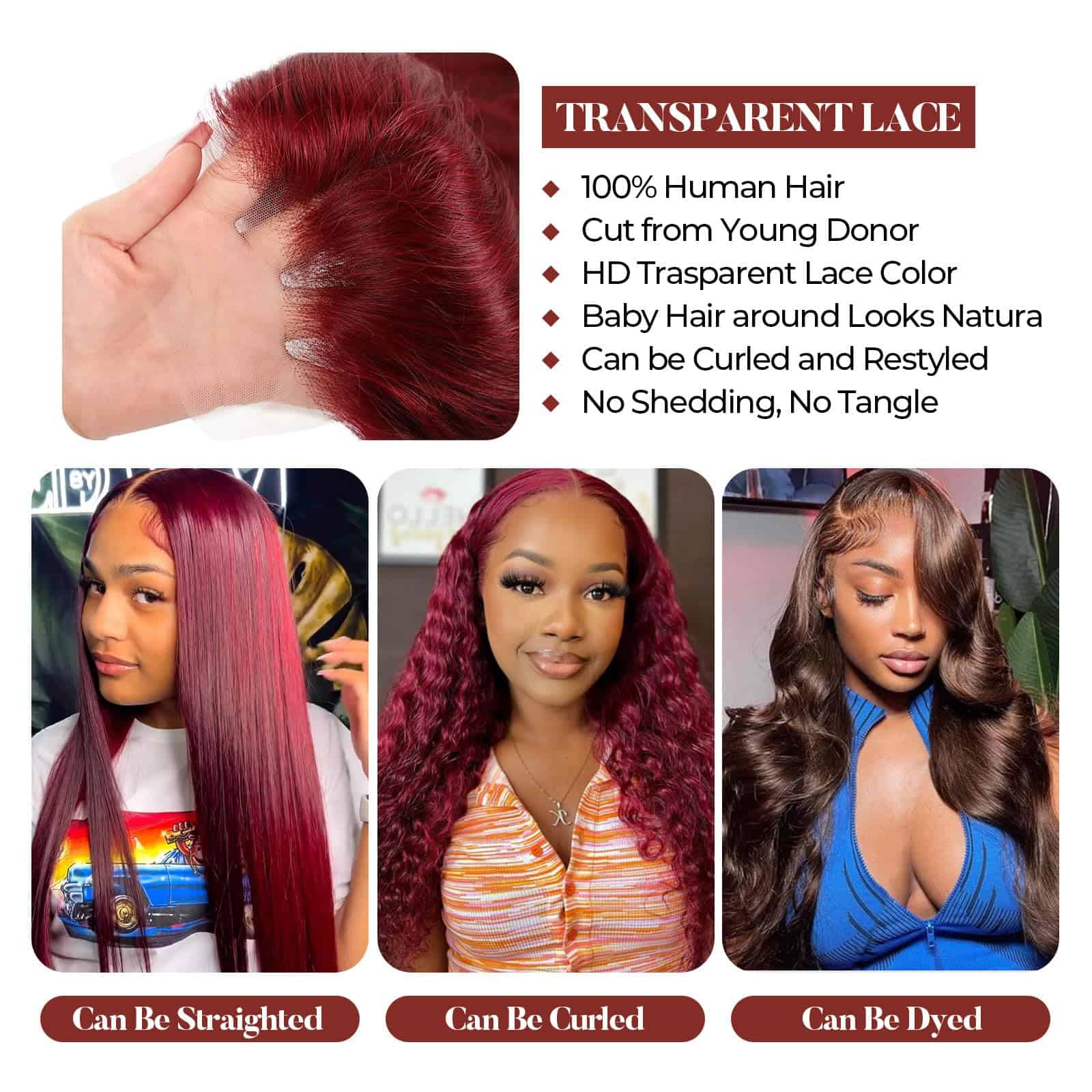 2. Textura de Peluca Roja: Peluca de Encaje de Onda del Cuerpo Super Natural y de Moda, Hecha de Cabello Humano al 100% por lo que Puede ser Teñida, Rizada, Alisada y Restilizada como quiera. Verdadero a la longitud y mantiene bien los rizos.