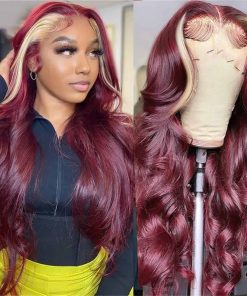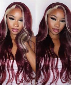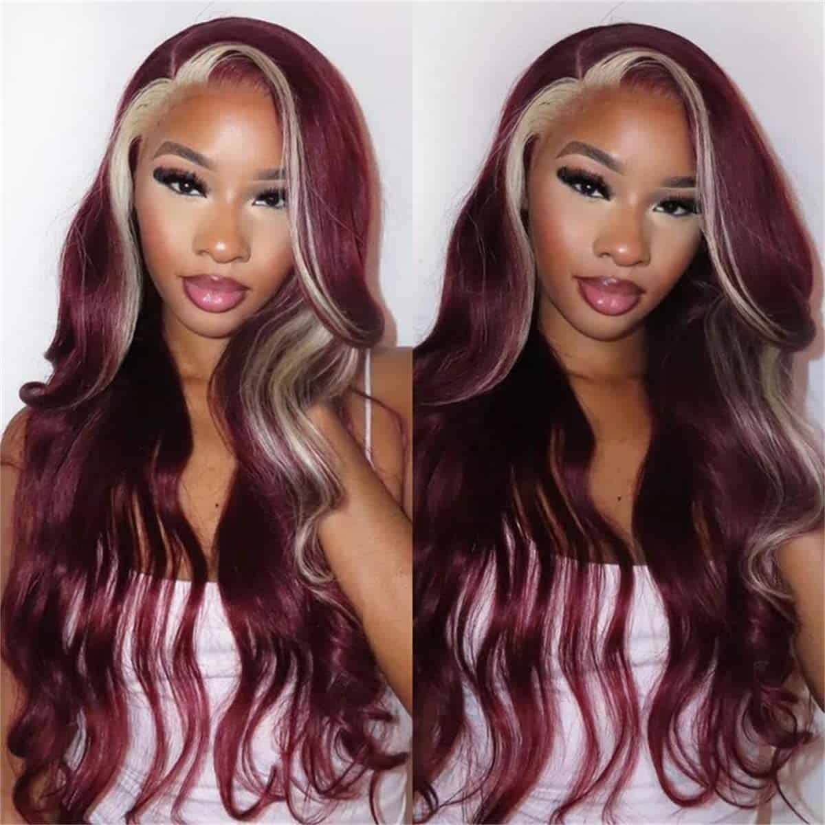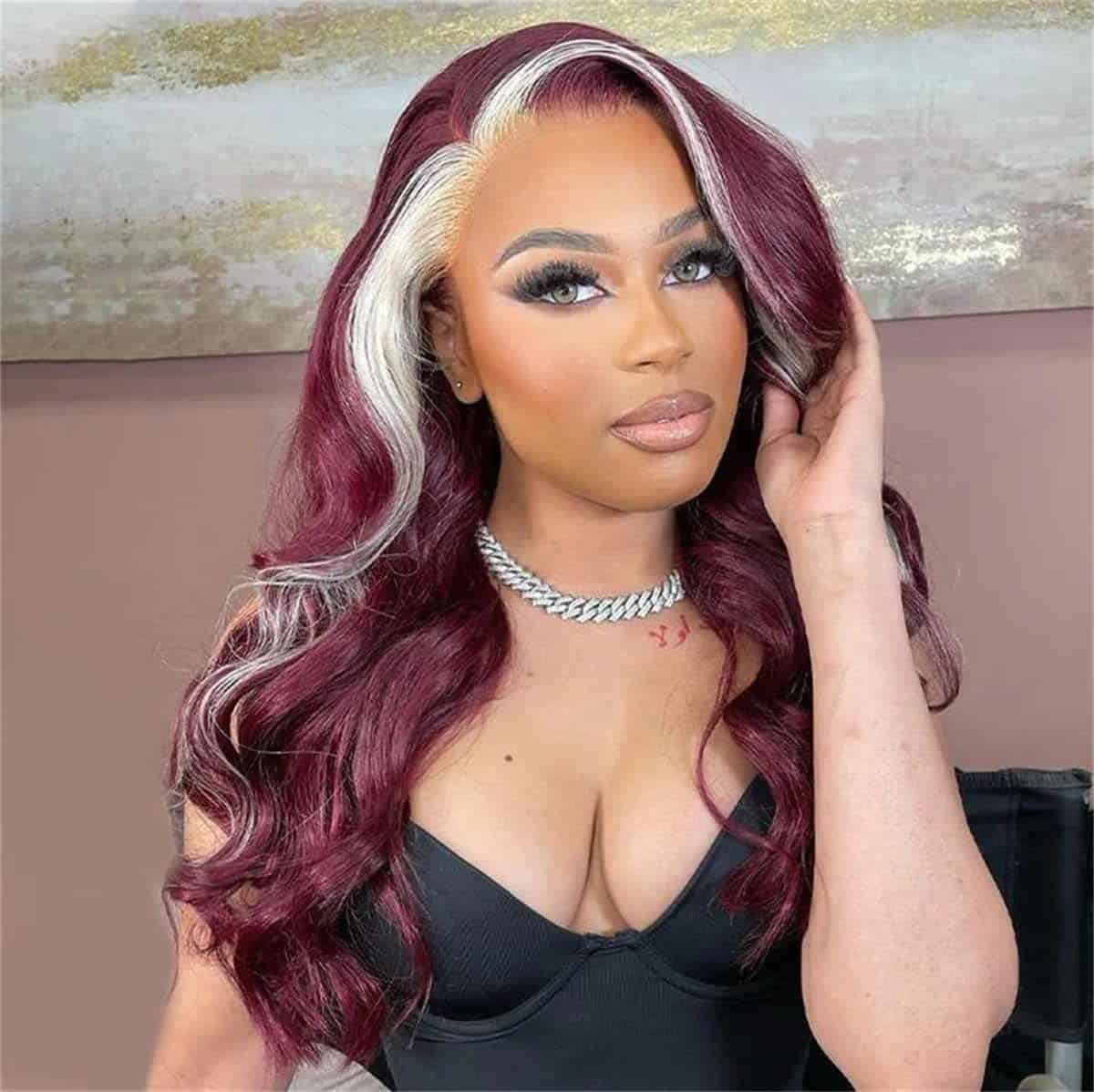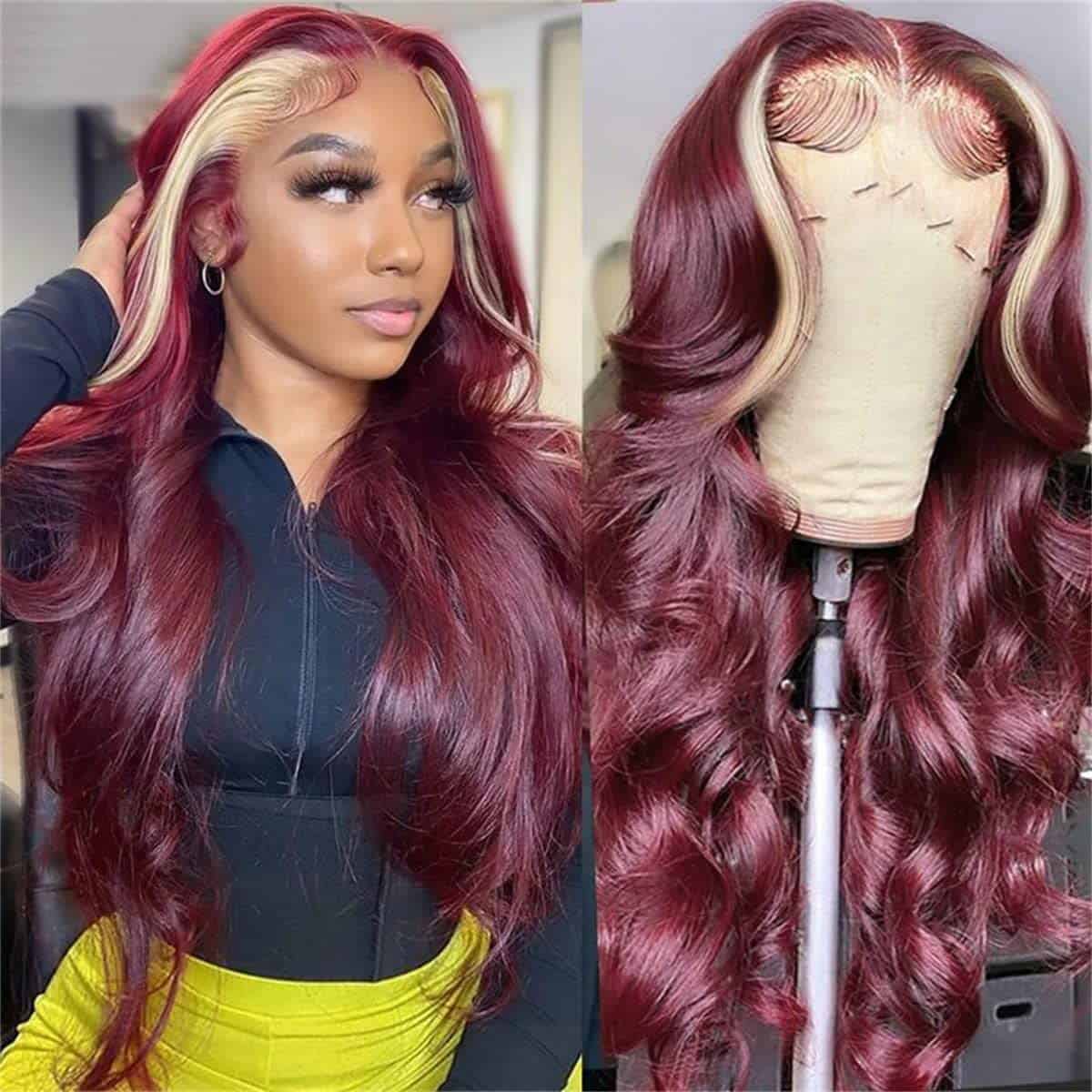 Pelucas de Encaje AimeileMiss Borgoña 99J con Mechas Rubias