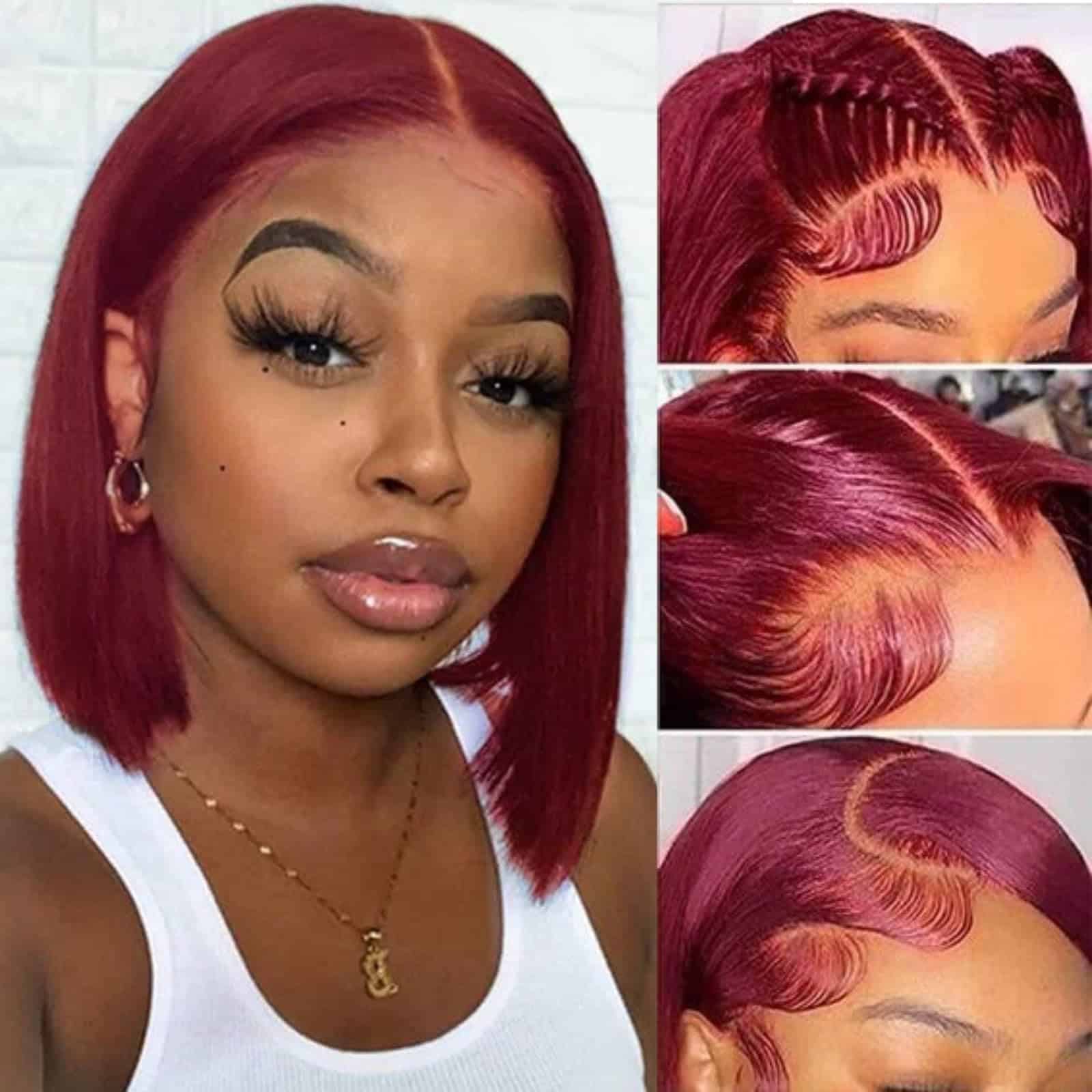 1. Material de Peluca Bob Cabello Humano 99j: 100% Pelucas de Cabello Humano corto sin procesar 13×4 de encaje recto brasileño, sin químicos u otros cabellos involucrados, suaves, saludables y suaves. Suave y sedoso, lleno y grueso, cómodo de usar.