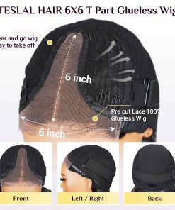 5. Peluca de Encaje de Parte T: peluca de parte en T 6x6x1, separación profunda, te brinda un aspecto natural, y es encaje HD con cabello humano atado a mano, pre-arrancadas y nudos pre-bleacheadas, se integra perfectamente con tu piel.
