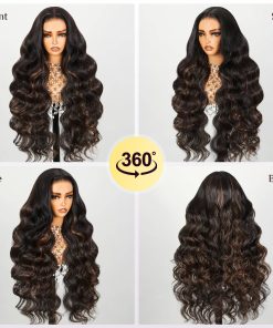 3. Peluca de Color Marrón Resaltado: la combinación perfecta de marrón y negro para adaptarse a todos los tonos de piel y estilos y ocasiones de vestir, la posición de resaltado mantendrá la línea perfecta sin importar cómo la separe, y la posición de resaltado se puede usar en el centro o en el lateral, suave y natural, grueso y saludable.